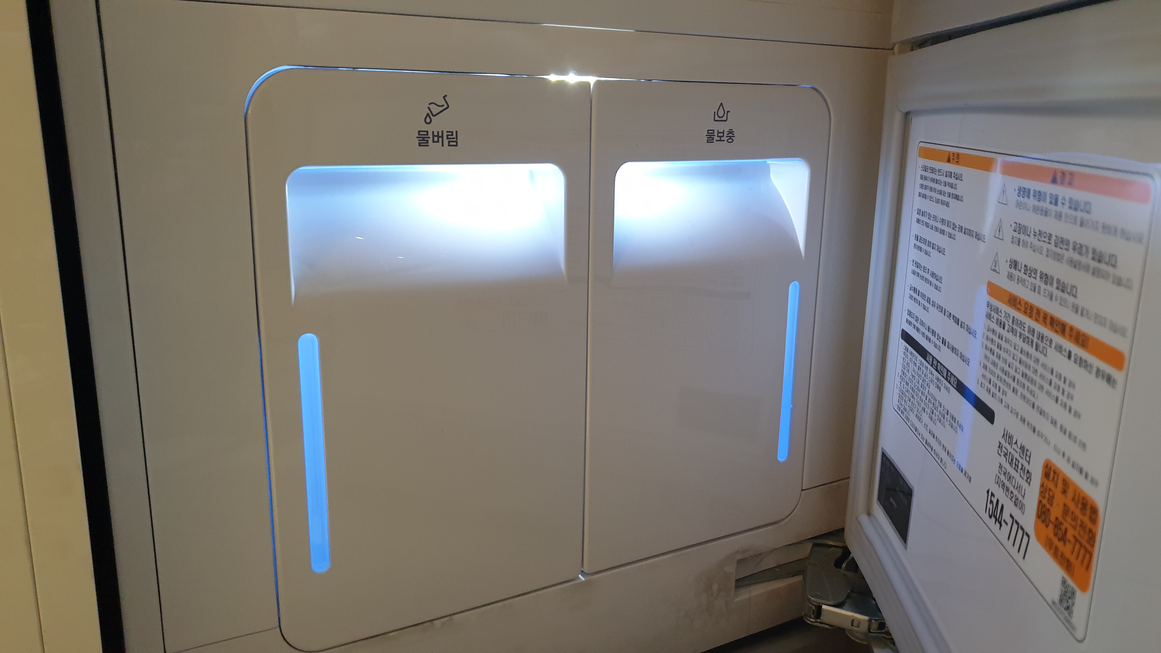 여하튼, 직접 사용해볼 수 있는 좋은 기회이기에 챙겨온 코트와 패딩을 잠시 돌려보았다. 사용방법은 의외로 간단했다. 스타일러 안에 있는 전용 옷걸이에 코트, 패딩을 걸고 하단에 물 보충 통에 물을 담아놓으면 작동을 할 수 있다. 물이 없는 상태라면 별도의 알림음으로 알려주어 굉장히 무신경해도 쉽게 확인이 가능하다.