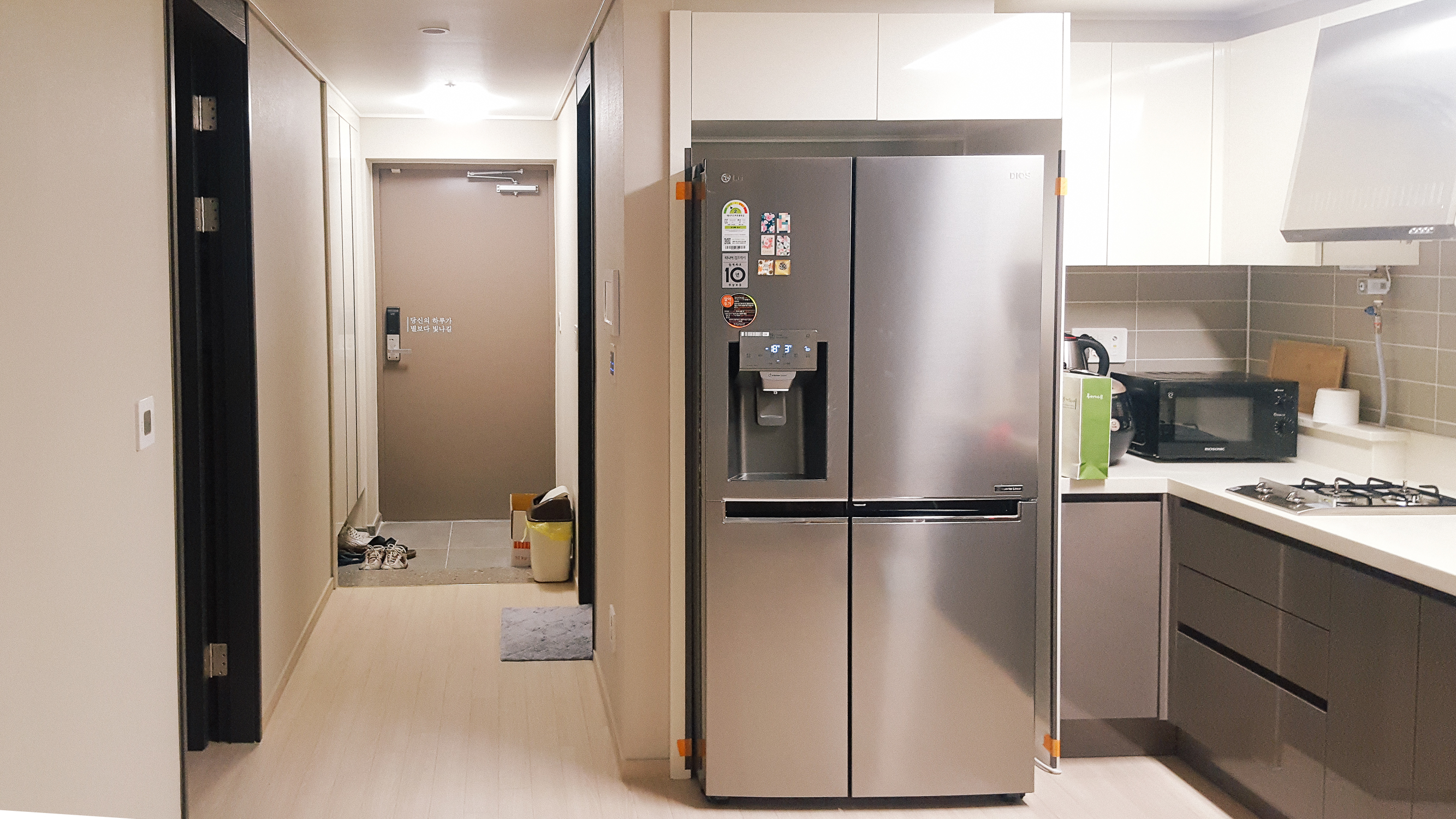 물론 나는 신혼부부로써 거주했기에 오랜기간 거주하기에는 한계점이 있었다. 아무래도 평수에 따른 협소한 공간이 가장 큰 단점이었다. 과하게 물건을 싸놓지 않는 우리였지만 기본 건조기, 냉장고, 세탁기, 옷장 이렇게만 배치해도 굉장히 꽉 찬 느낌이었다..ㅠㅠ 그래서 거주하는 기간이 지날수록 공간을 효율적으로 활용하기 위한 방법들을 쓰기 시작했다.