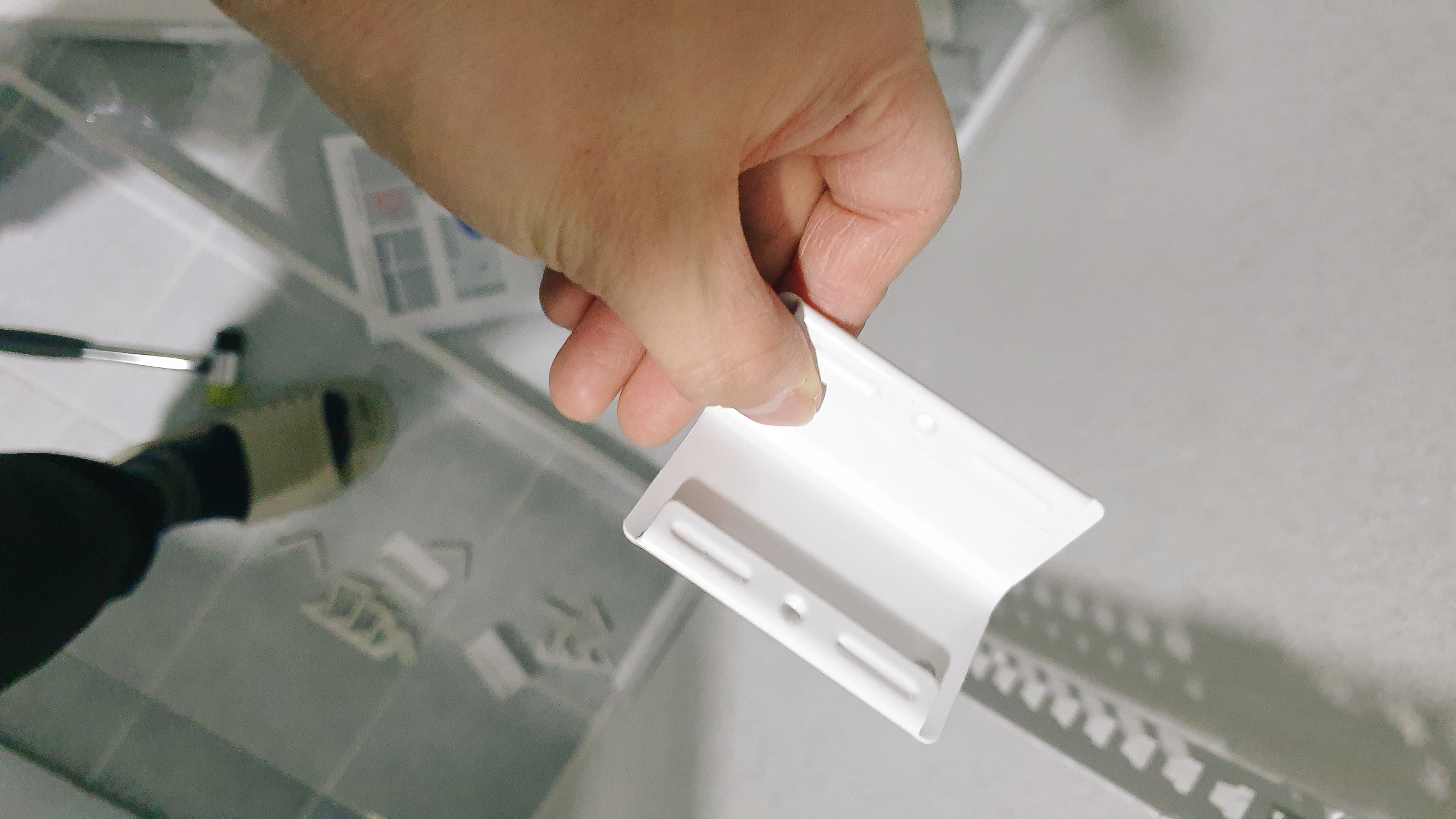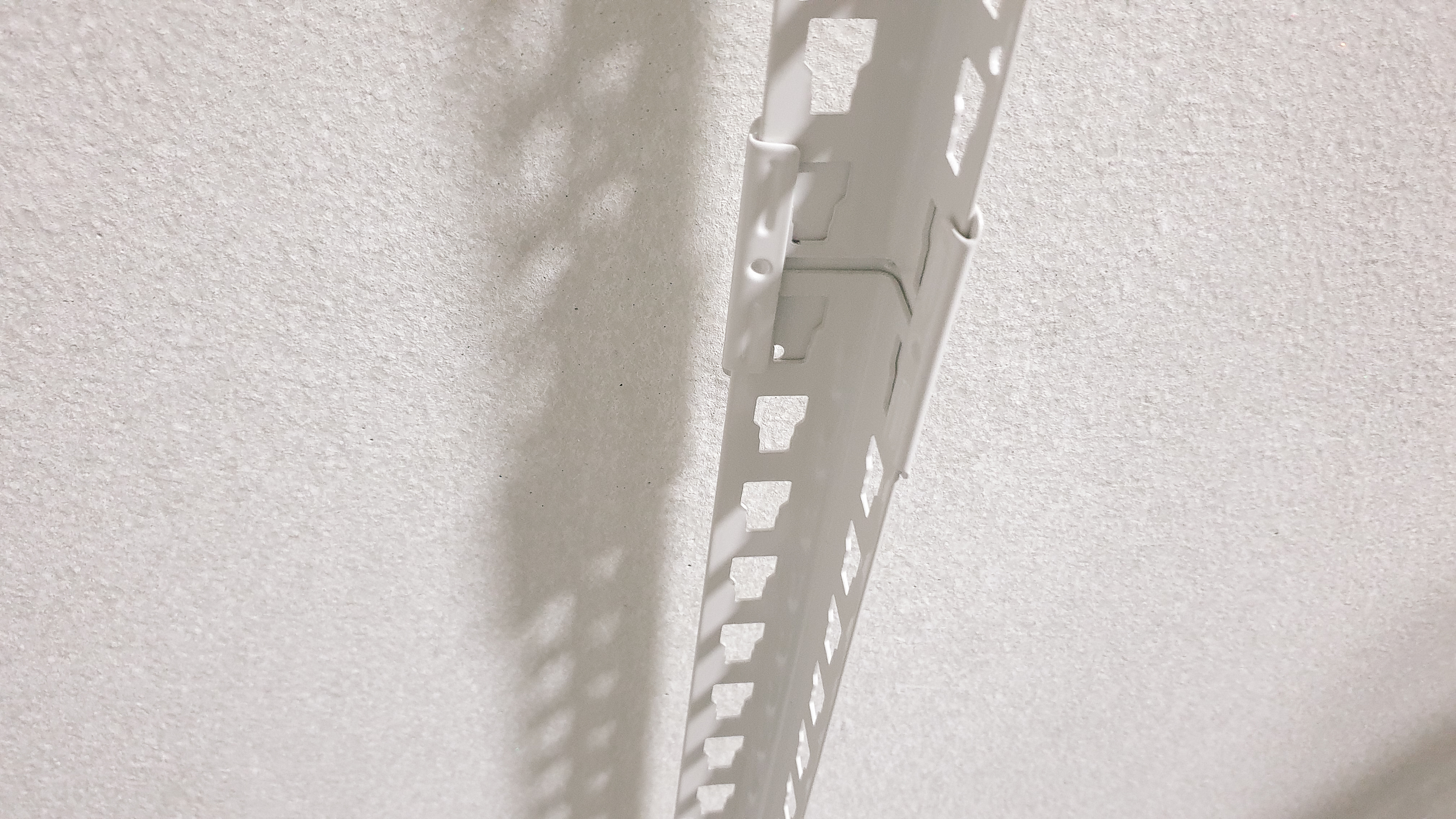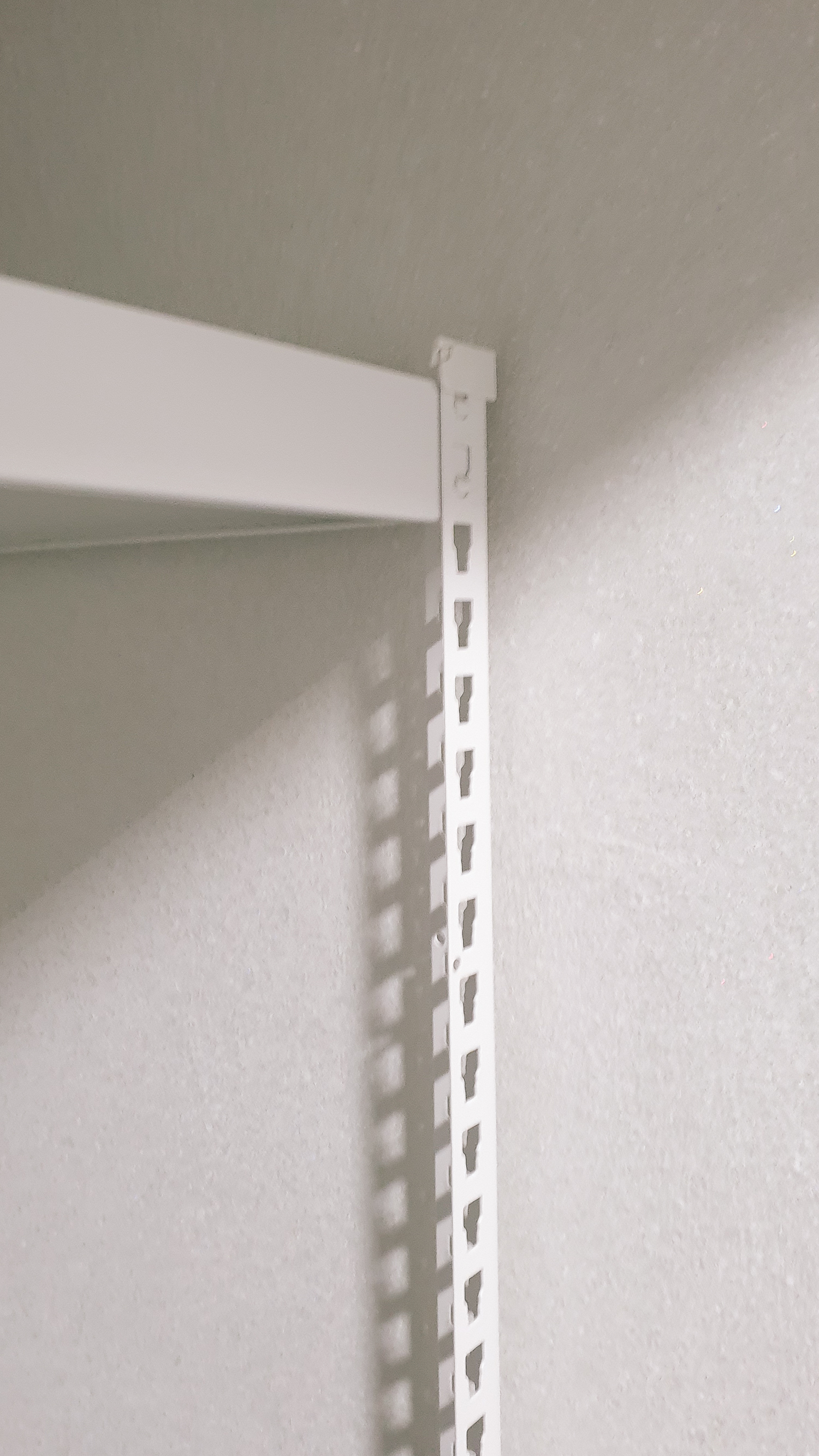 나는 높이가 180cm 앵글이었기 때문에 세로형 철제를 고정시켜주는 것을 중간에 끼워 2개로 높이를 올리는 형식이었다.