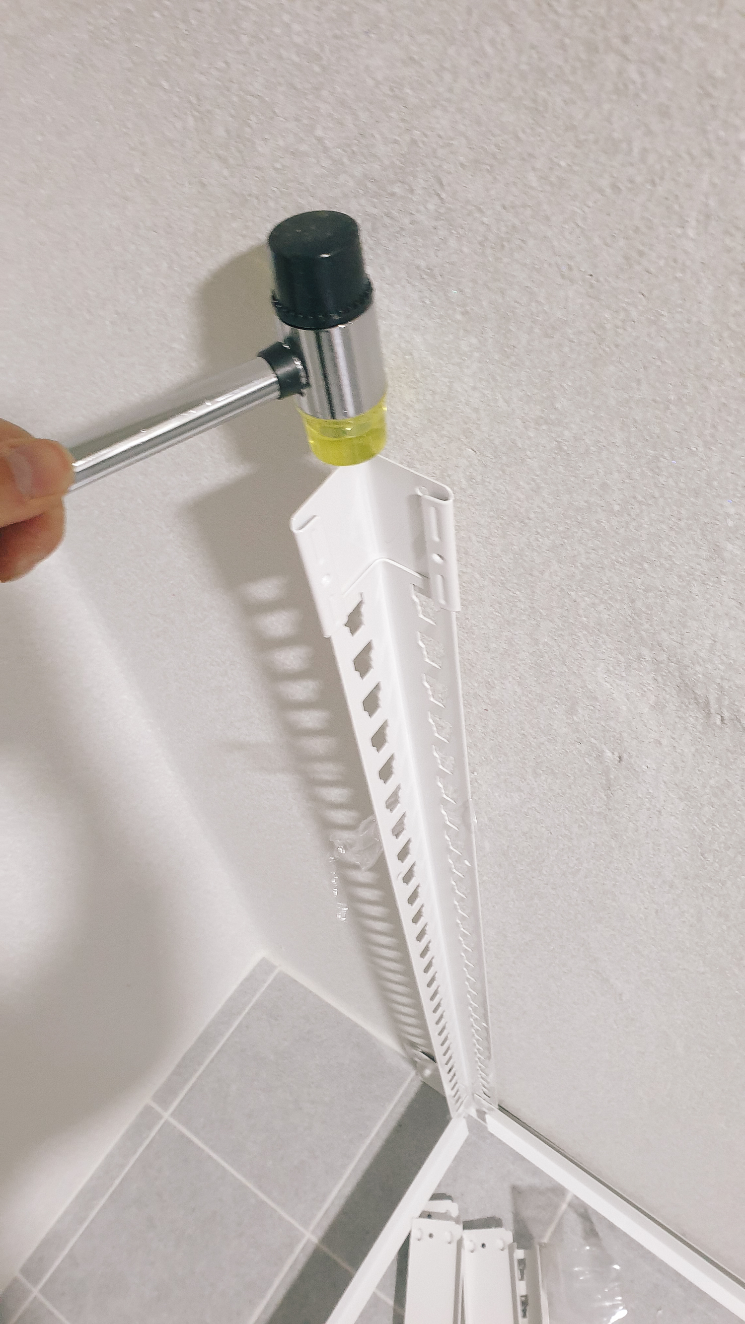 바닥과 천장 철제 부분에 몰딩을 대는 것이 있어 뒤늦게 고무망치로 때리면서 설치.