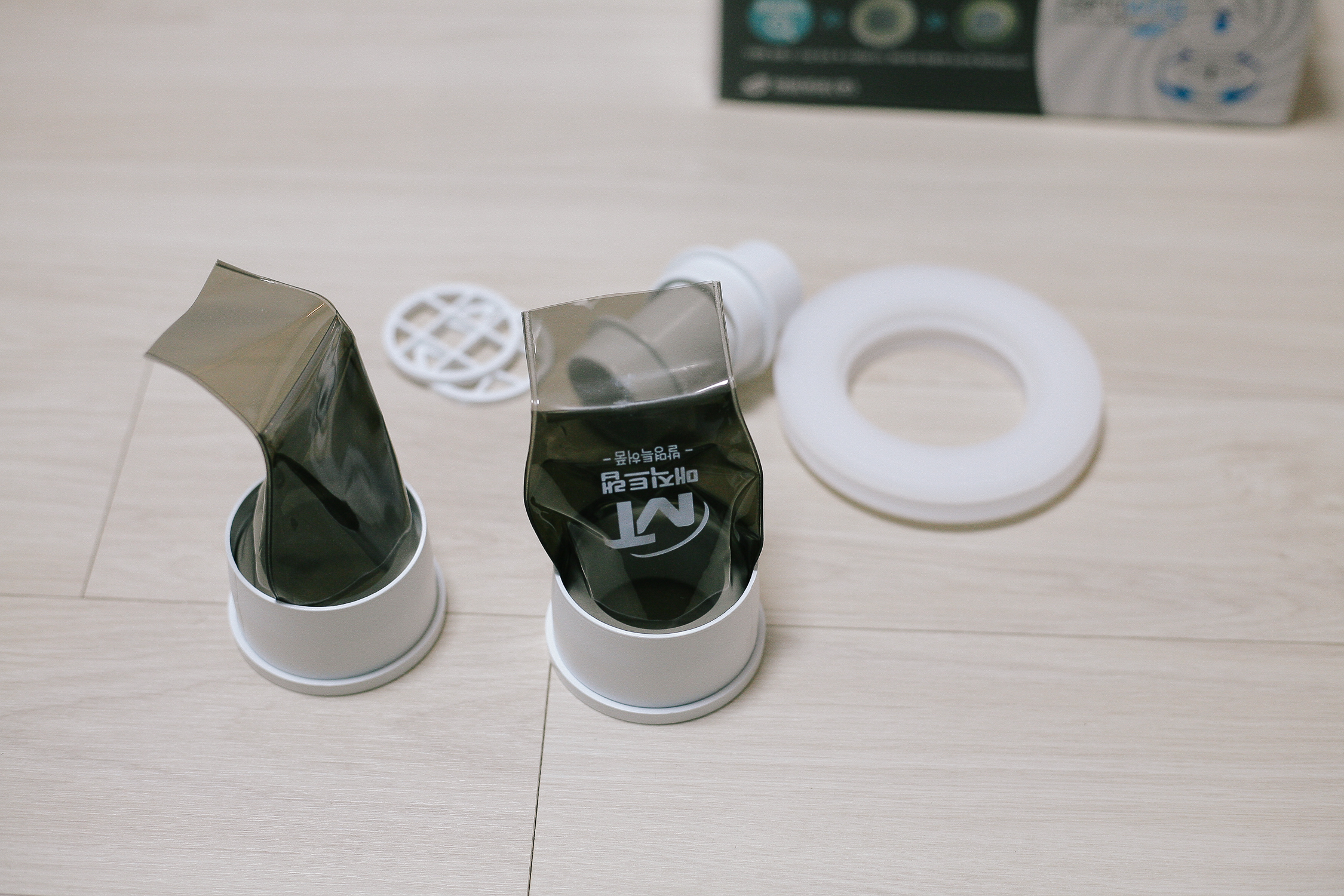 매직트랩 설치 전 기존의 배수구 바깥 라인을 휴지로 물기를 제거한 뒤 방수 접착제 고르게 펴발라준다. 그리고 매직 트랩을 끼워주면서 꽉 고정이 되도록 한다. 그럼 완벽히 냄새가 올라오는 것을 차단해준다. 이 아이템을 진작에 알았더라면, 자취할 때도 사용하는 거였는데, 그땐 무식하게 세탁기 호스 외 부분을 테이핑 도배를 했었다.. 그렇다고 냄새를 차단하진 못했지만...ㅠㅠ