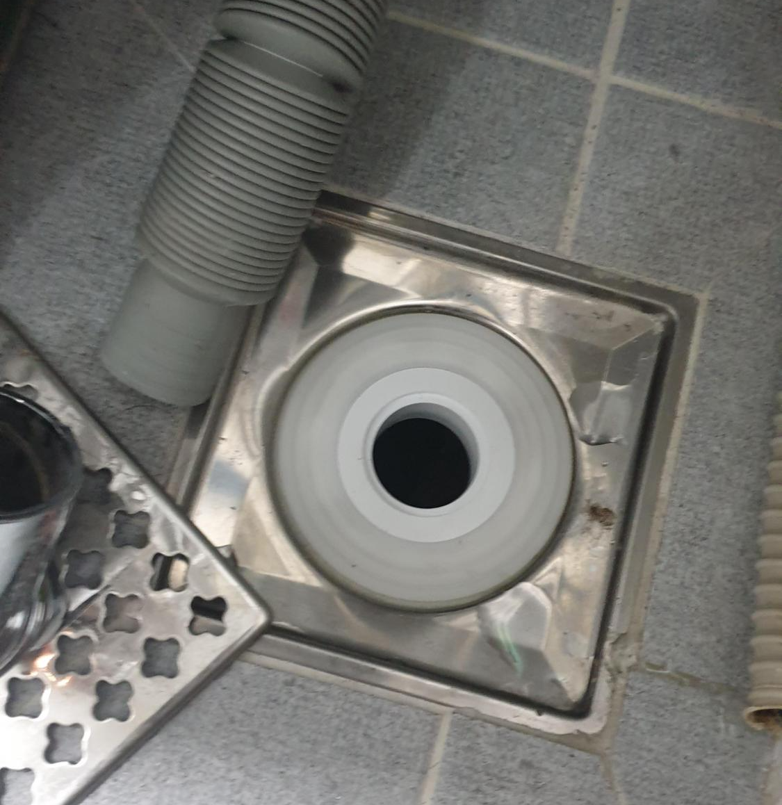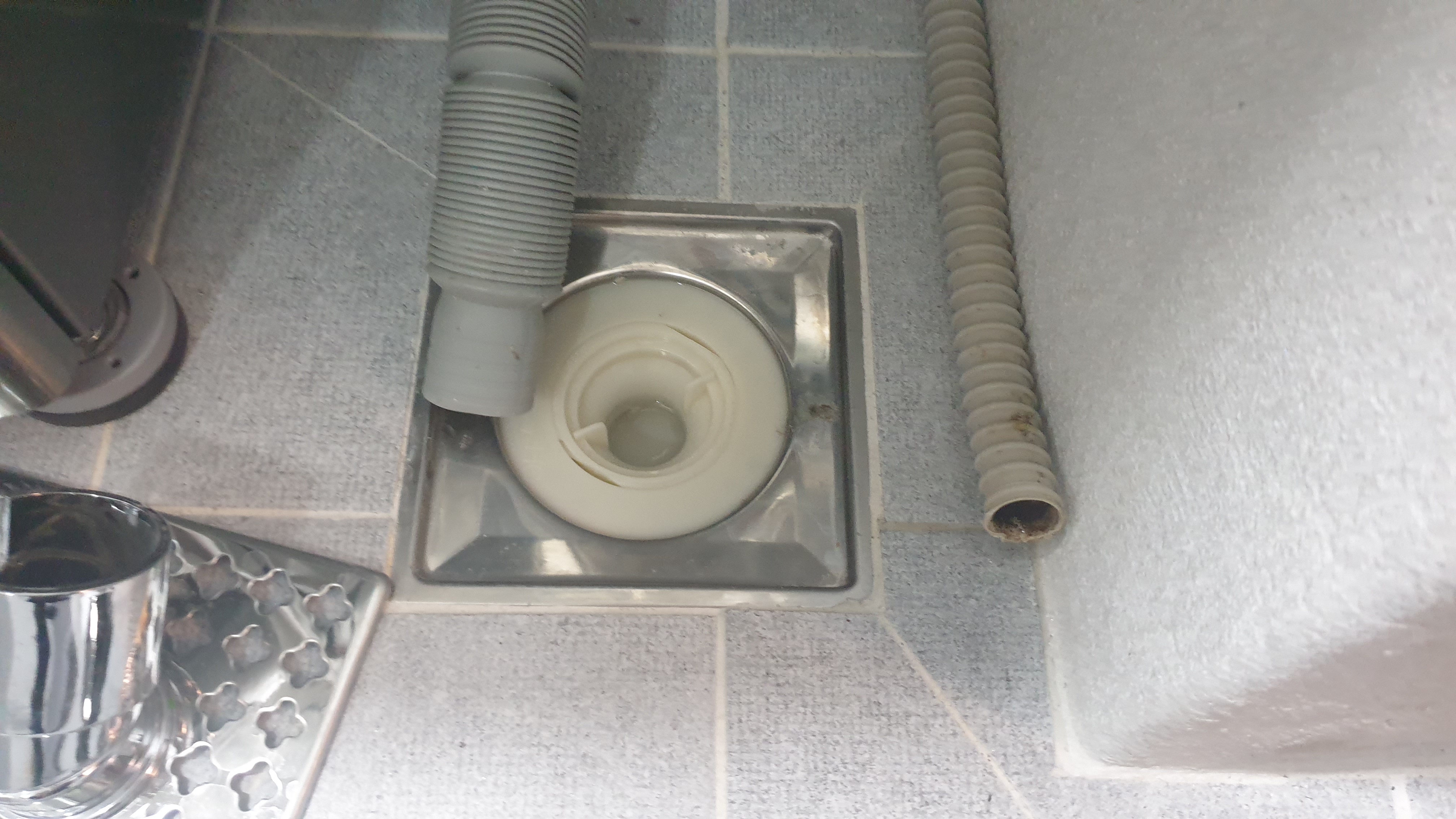 설치 전 배수구에 적용된 기본 트랩을 제거한다. 이 트랩은 가장 기본적이면서 일반적인 모델이라고 할 수 있다. 두 개가 서로 포개진 형태로 밑에 물이 살짝 고이게 하여 배수구에서 올라오는 냄새를 막아주도록 설계되었지만, 생각처럼 냄새 차단 효과가 미미하다고 할 수 있다. 냄새 차단이 잘 된다면 매직 트랩을 살 이유가 없었겠지ㅎㅎ
