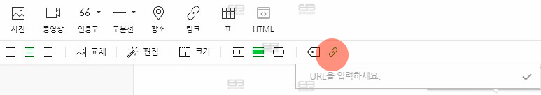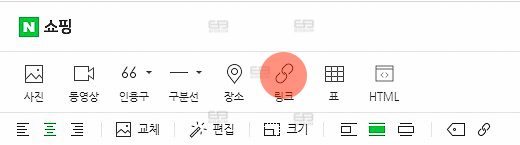 동일한 에디터 화면 상단 메뉴중 아이콘과 텍스트가 함께 씌여져 있는 링크 메뉴가 아닌 링크 아이콘만 적용된 부분이 있다. (위 이미지 마킹한 부분 참조) 이 링크 아이콘을 활용하면 판매 스토어팜 내부 링크만 적용되는 것이 아닌 외부 링크도 적용이 가능하다.