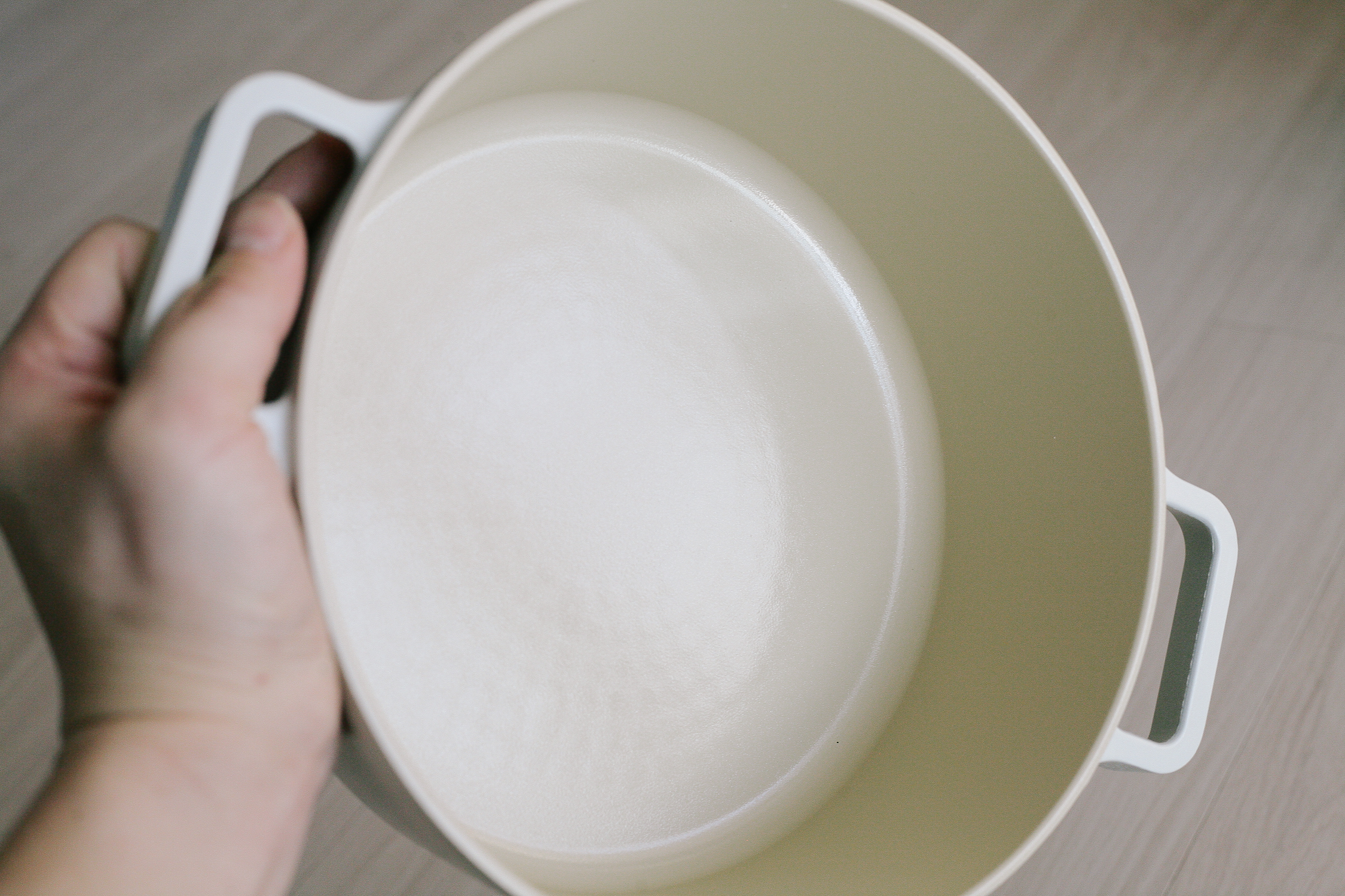 22cm 곰솥 냄비. 지름 220 x 높이 155mm, 총길이 285mm이다. 네오플램 피카 냄비 3종 세트의 미드나잇 그린 색상의 피카 리저브는 빨간 양념에도 착색되지 않고 변함없는 부드러운 컬러를 자랑한다고 한다.