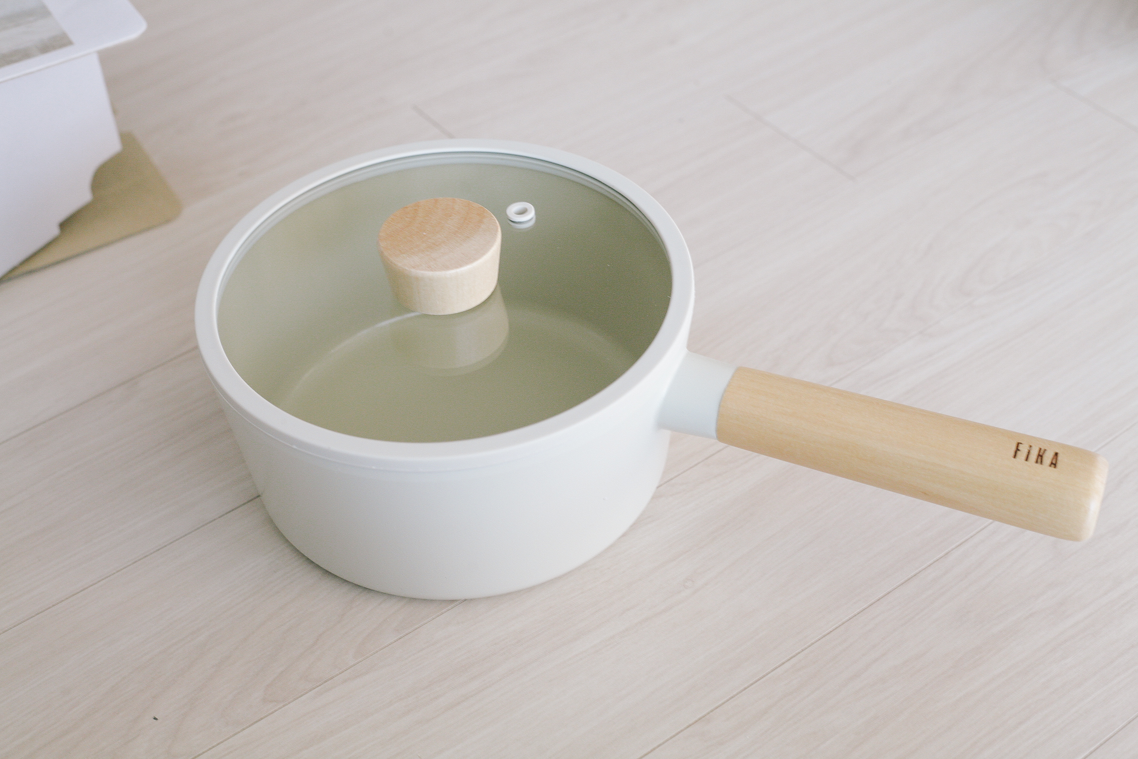 손잡이는 원목으로 되어 있으며 피카 FIKA라고 새겨져 있다. 화이트톤 색감과 원목은 굉장히 잘 어울렸다.