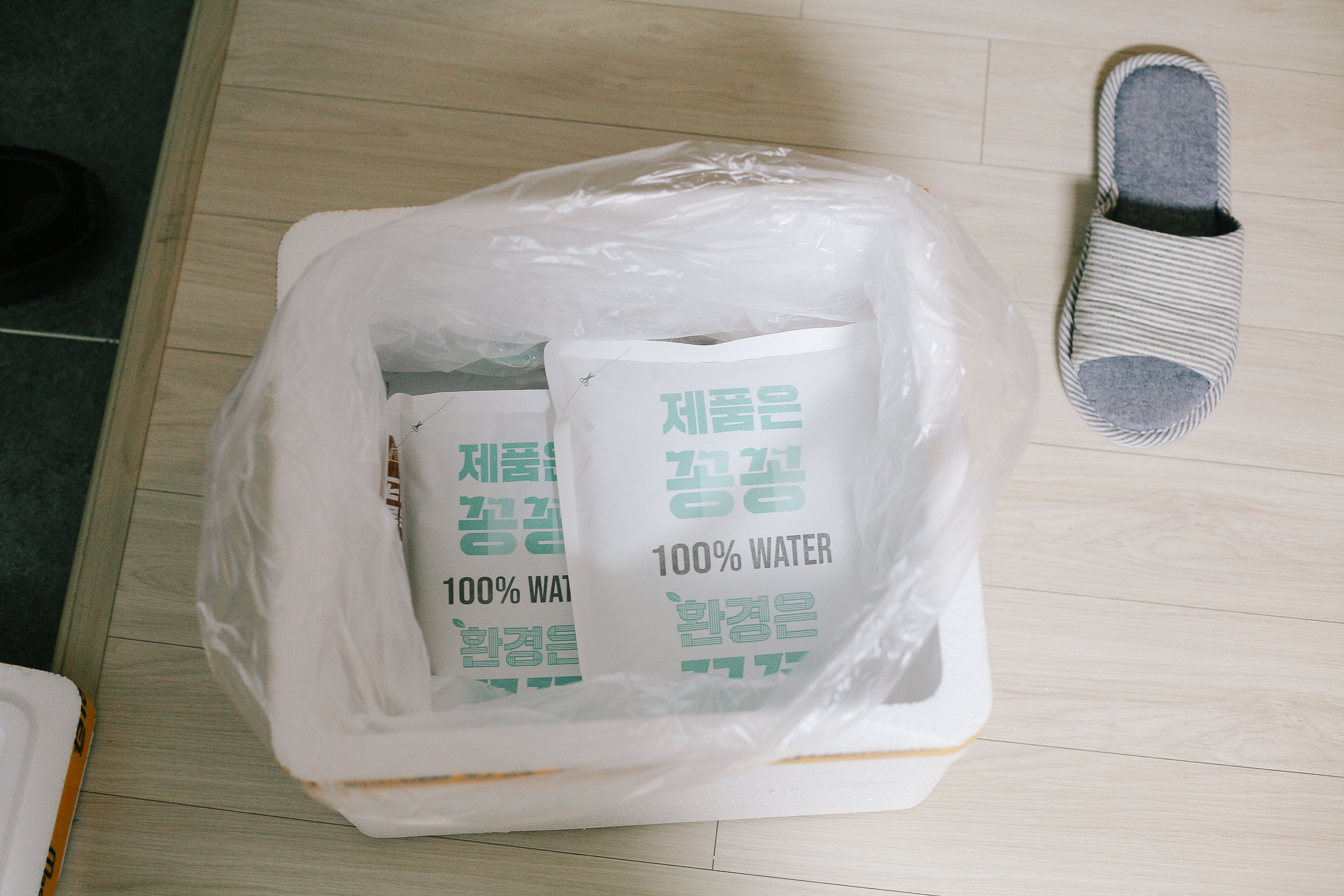 배송도 꼼꼼히 포장되어 왔고, 사은품으로 탄산 음료도 넣어주셨다. 그리고 무엇보다 아이팩이 물로 얼려서 제작된 것으로 환경을 생각한 아이스팩이었다. 요새 회사에서 신규 개발하는 브랜드가 있는데 그 제품도 환경을 생각한 제품이다 보니 요새는 이런 소소한 것들이 눈에 들어온다.