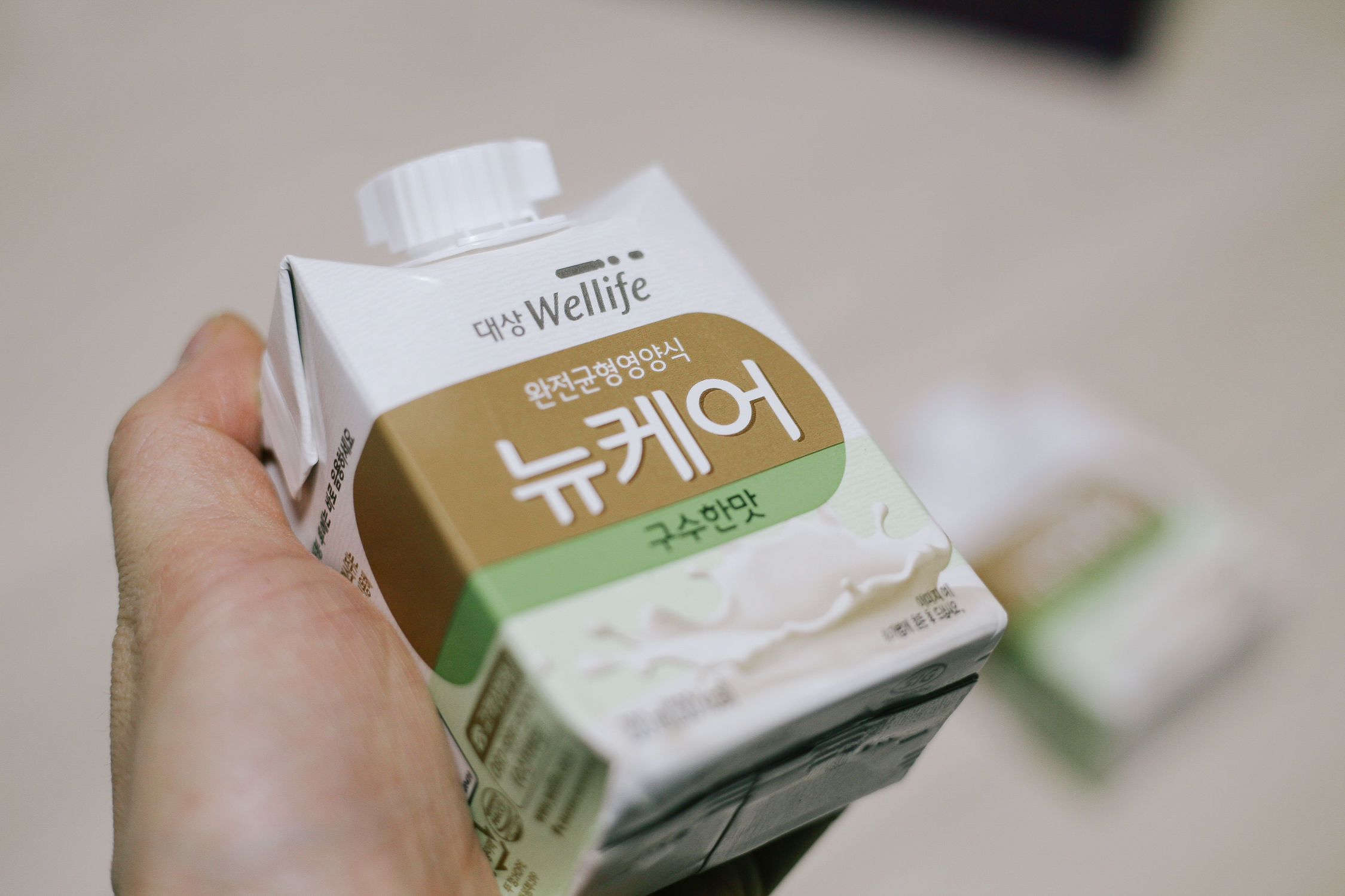 성인 남성 한손으로 꽉 잡히는 적당히 아담한 크기. 개당 200ml 용량이다. 완전 균형 영양식으로 환자의 영양 상태 개선은 물론 체중 감소를 막아준다. 3대 영양소 및 22가지 비타민과 무기질이 함유되어 있어며, 장 내 환경 개선 및 배변을 돕는 난소화성말토덱스트린이 함유되어 있다.
