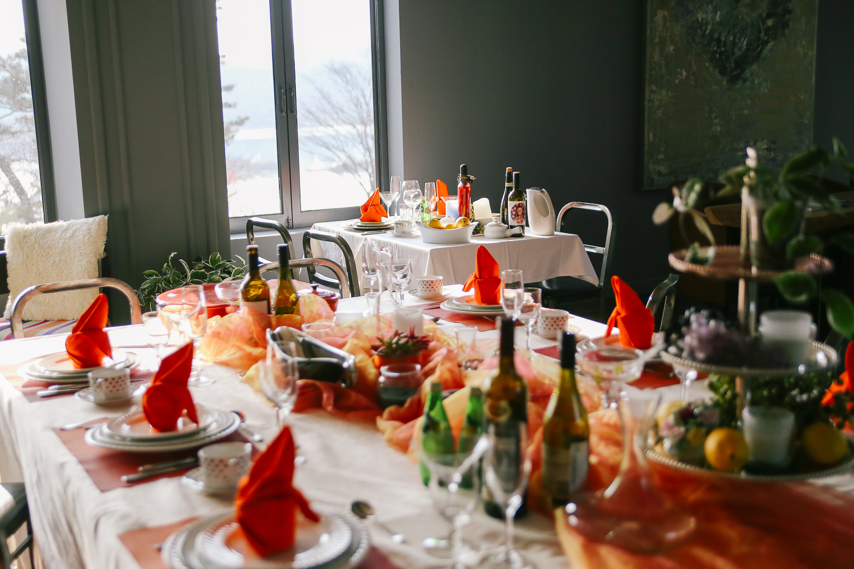 전체적으로 바라본 2층 전경 모습. 흡사 파티를 막 시작하기 전 세팅을 한 모습 같았다.