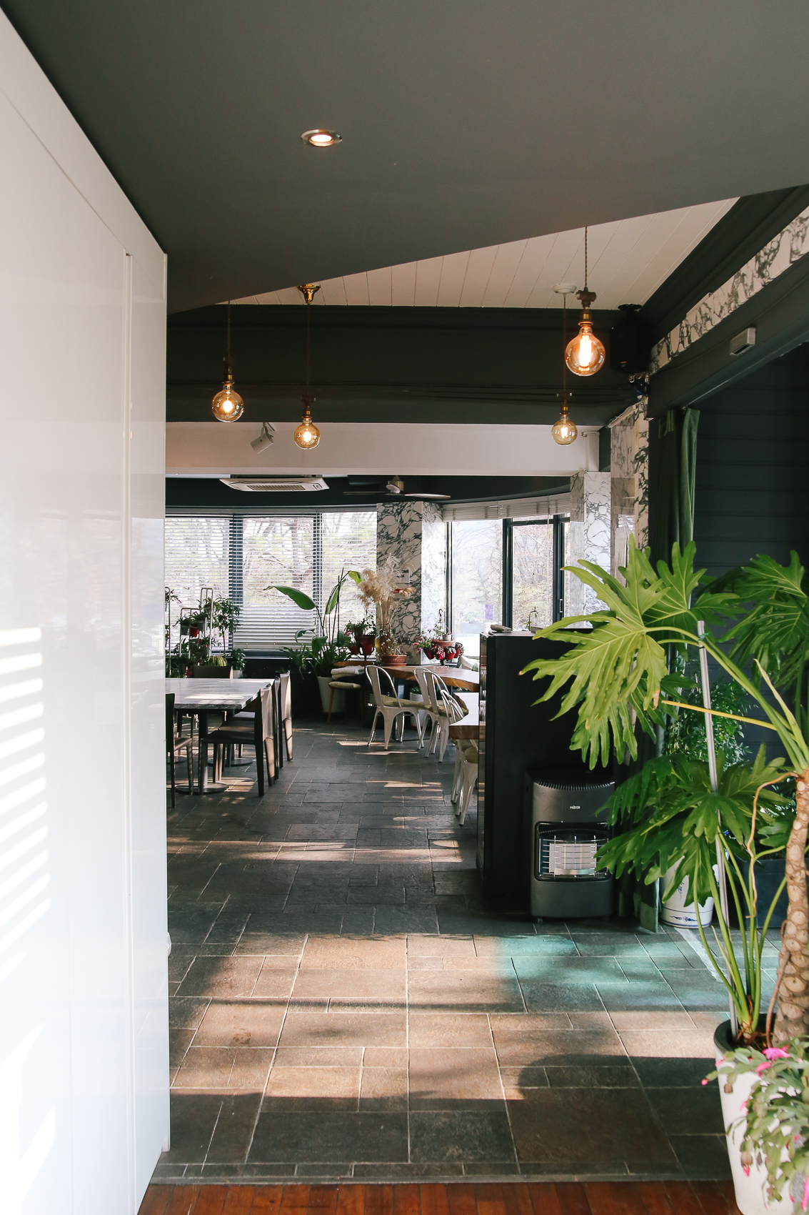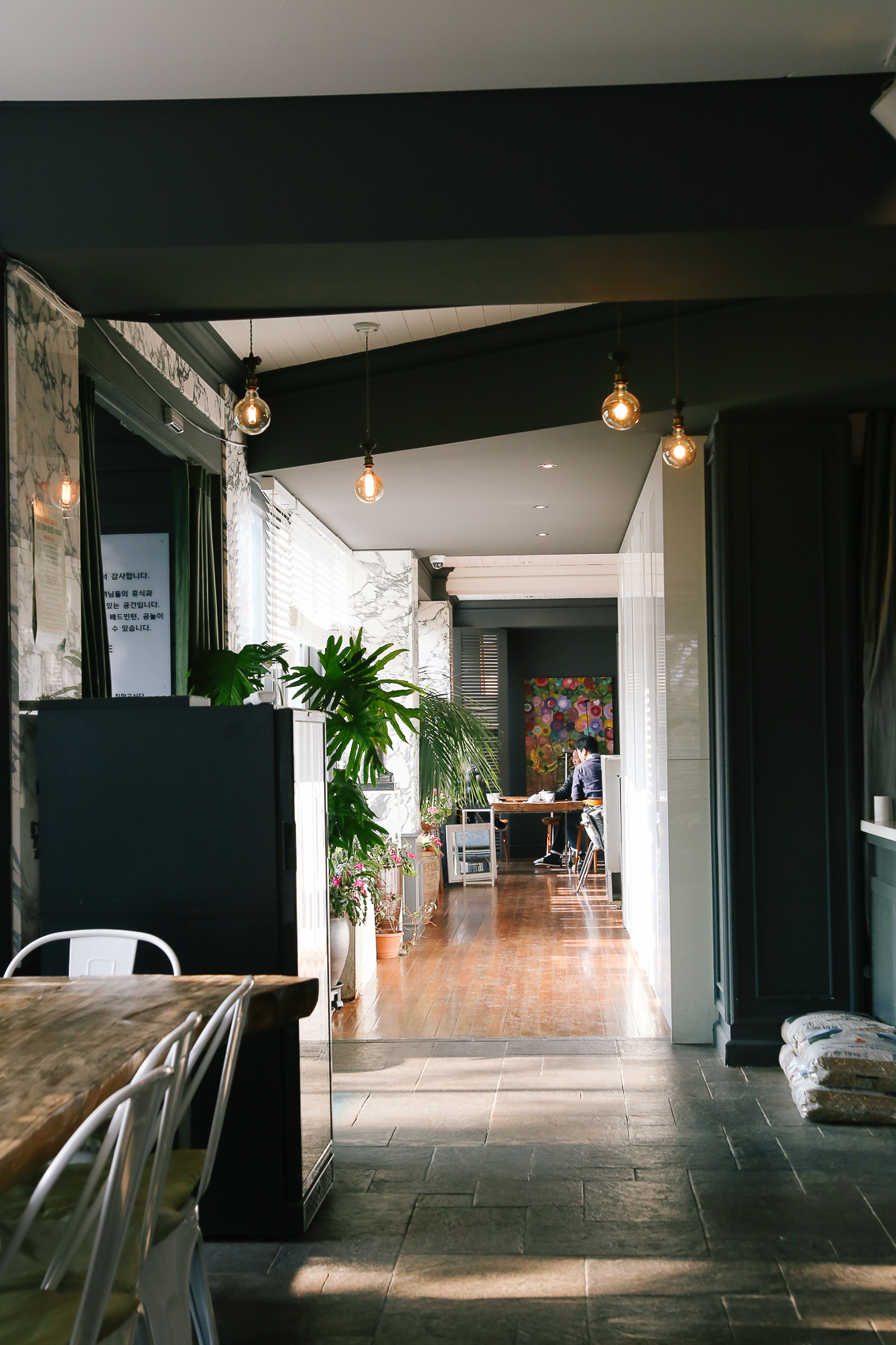 다양한 테이블과 소파가 자리하고 있어 다양한 구성의 손님들이 휴식을 취할 수 있는 공간이었다. 더불어 큼지막하고 예쁜 식물 화분은 덤 :)