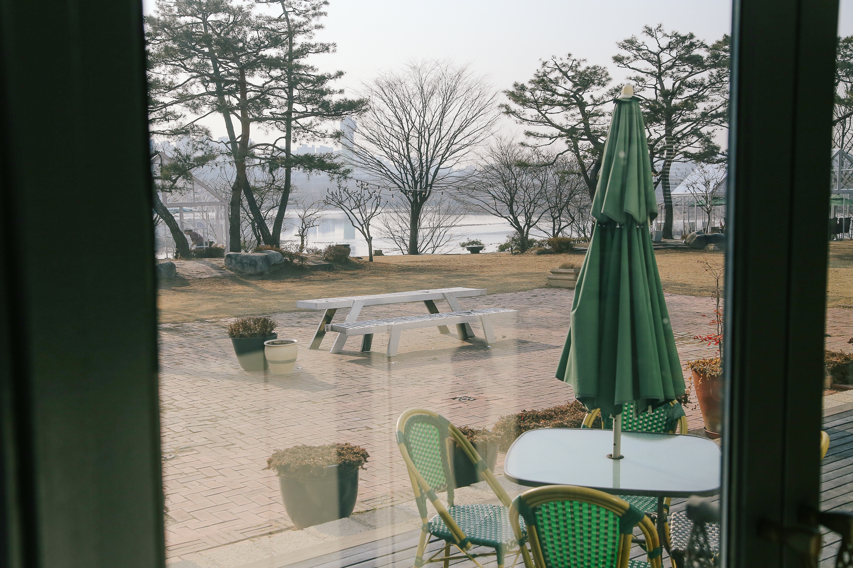 창밖에 보이는 정원 전경. 미세먼지가 나쁜 날이었지만 불행 중 다행이라면 공기 중에는 뿌연 모습이 없어서 저 멀리 한강뷰를 편하게 감상할 수 있었다.
