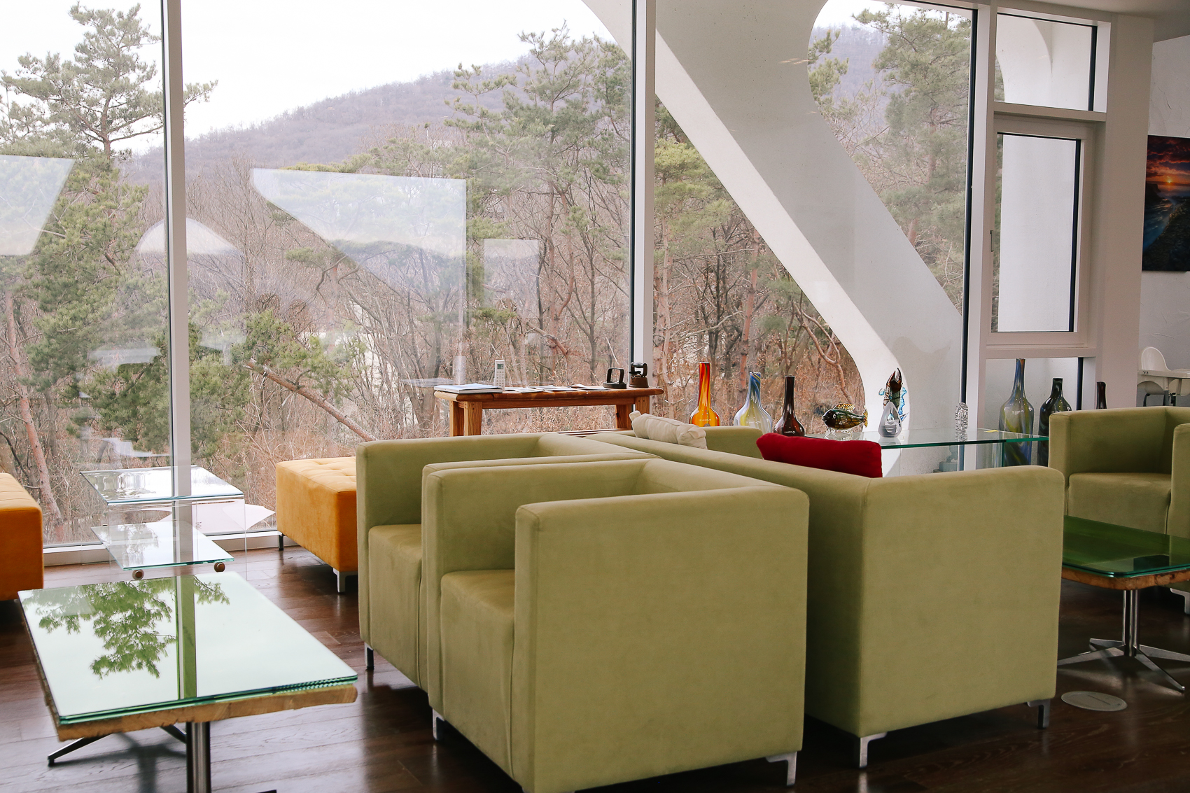 내가 볼 땐 가장 좋은 상석으로 먼저 선점하는 손님이 장땡이다!ㅎㅎㅎ 단체 인원도 수용할 수 있는 소파 자리라 부담없이 앉아 오랫동안 풍경을 감상하여 휴식을 취하기 딱인 공간!