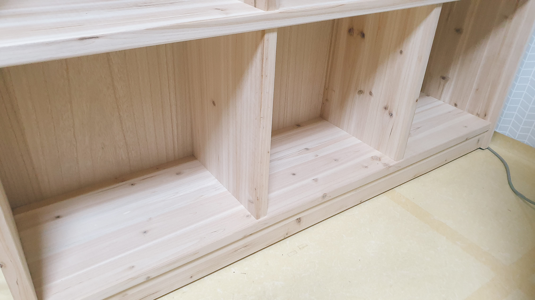 책장 하단부분에는 걸레받이가 있어 무게감이 있고 안전감있게 사용할 수 있다.