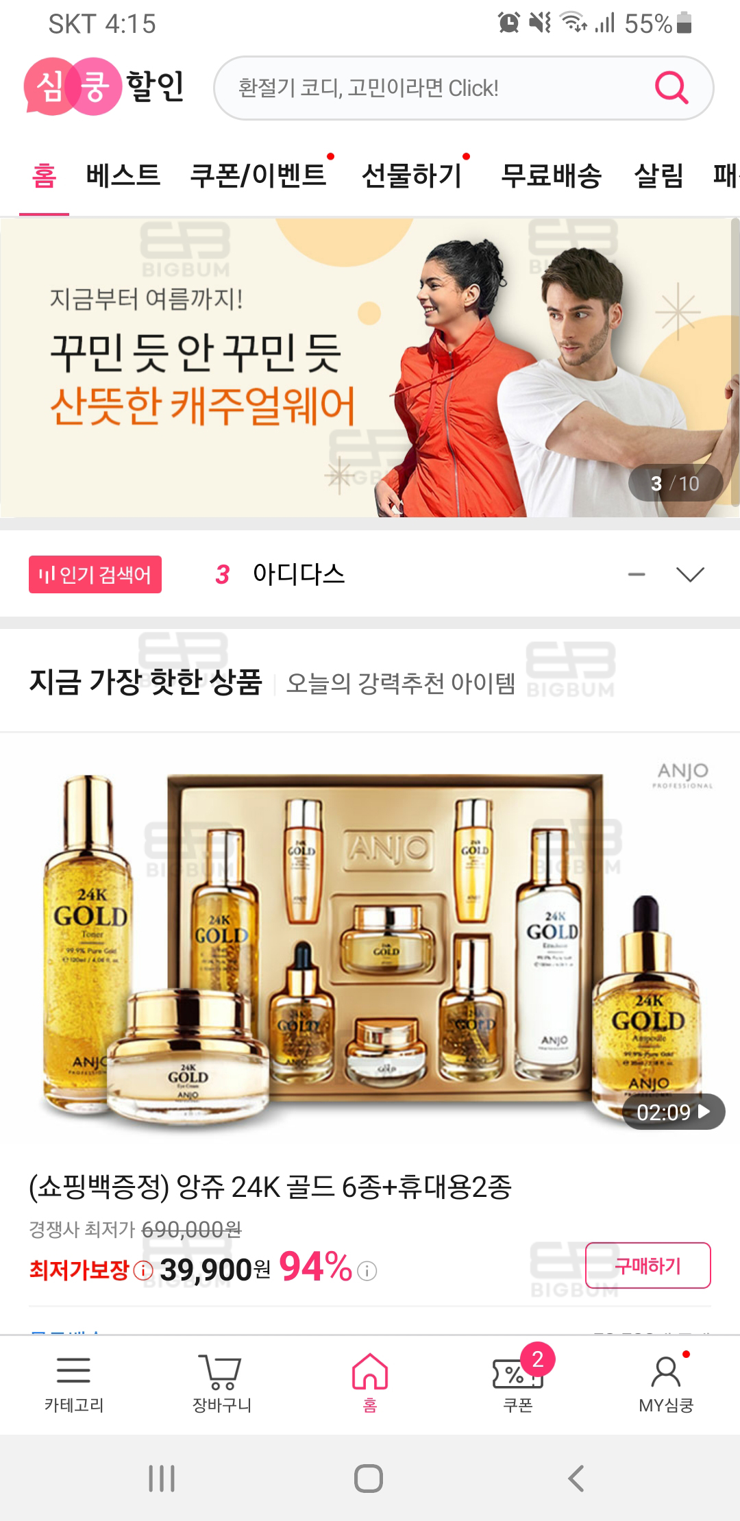 우연히 카카오톡 뉴스 같은 것을 보다가 우측 광고배너를 보았고, 국내 최저가라고? 혹시나 하는 마음에 설치를 해서 사용하게 된 앱 심쿵 할인이다.