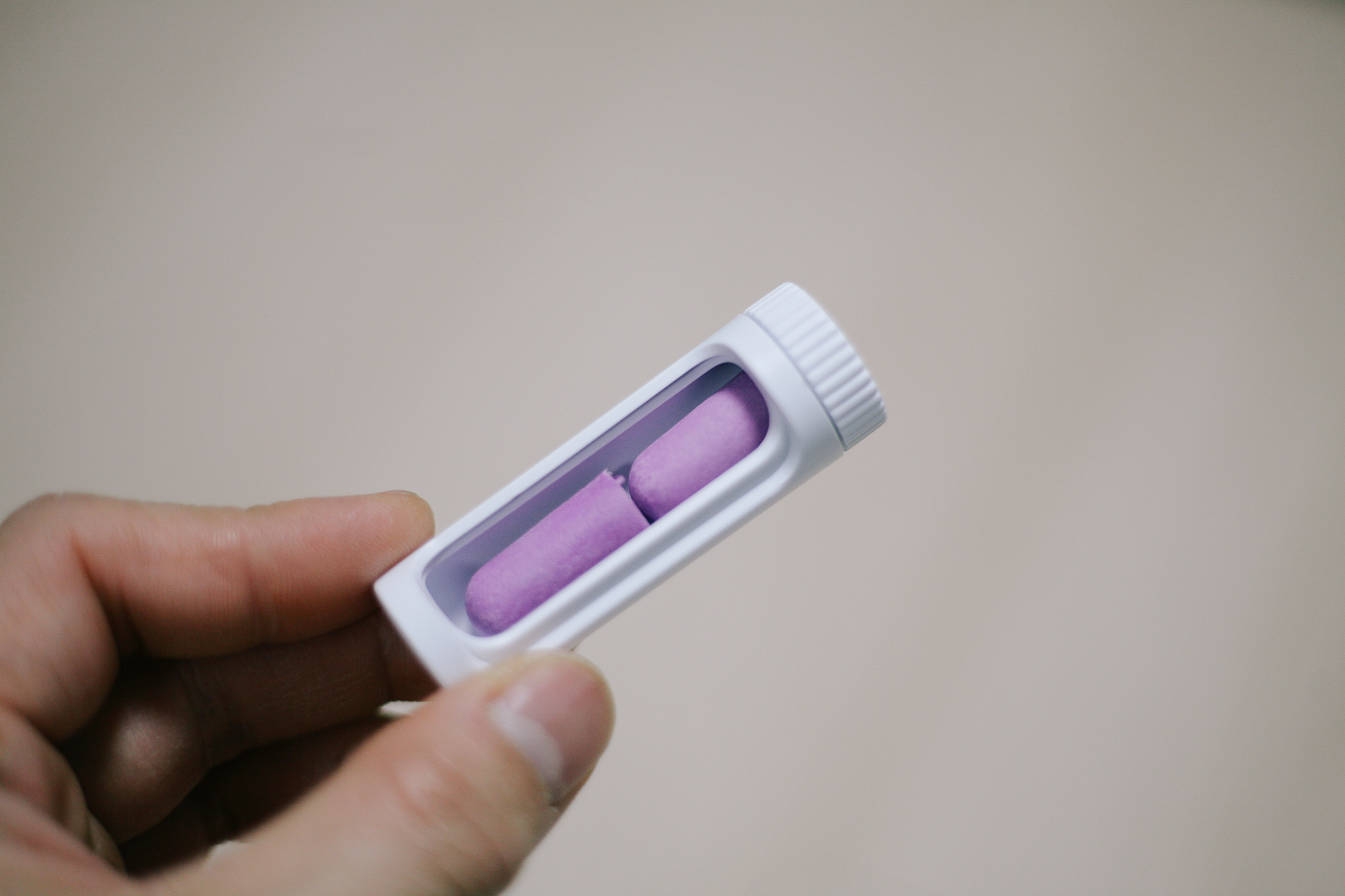 마침 아내가 좋아하는 보라색ㅎㅎ. 착용 방법은 간단하다. 폼으로 된 재질이라 귀에 맞게 힘을 주어 모양을 압축시켜 준 뒤 귀에 착용을 한다. 그럼 서서히 이어플러그 폼이 본래의 모양으로 팽창되면서 귀에 알맞게 꽉 차게 된다.