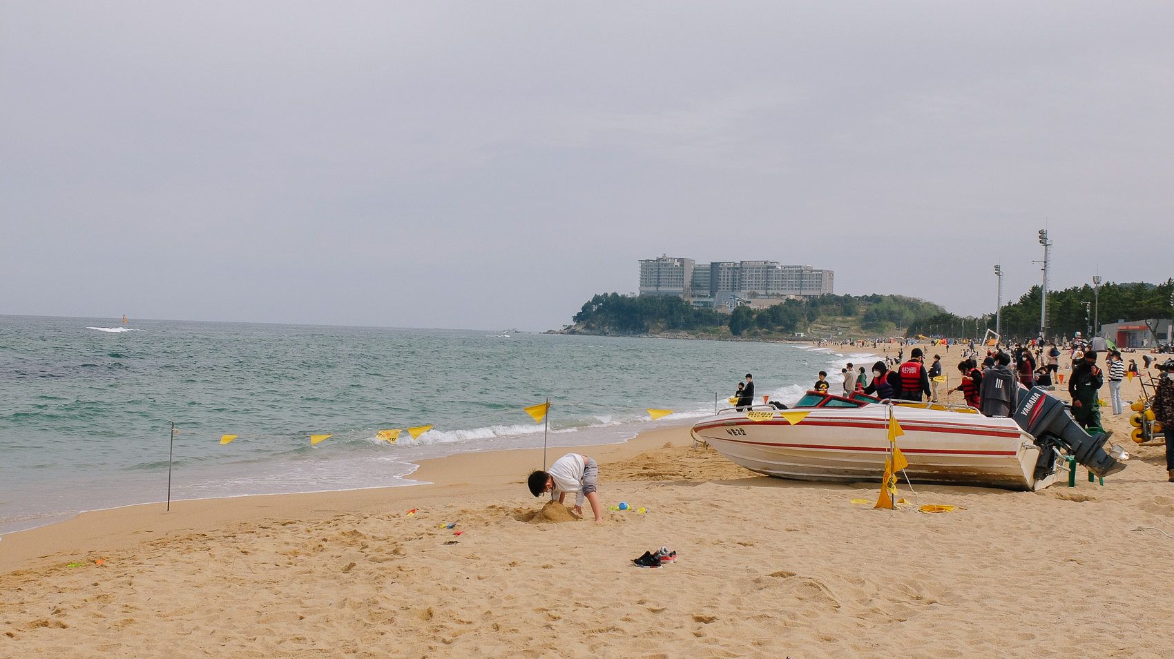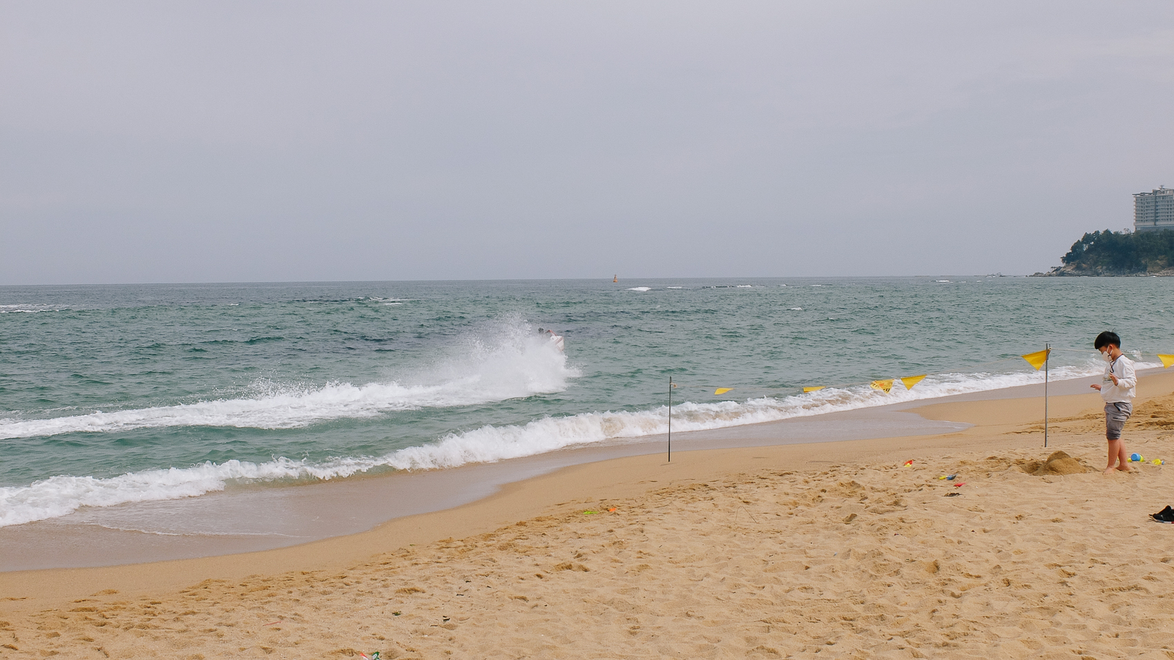 그래도 보트를 타며 즐기는 사람도 몇몇 볼 수 있었다. 바람이 쎈지라 멀리까지는 나가지 못하고 모래사장 인근에 왔다 갔다 회전을 하며 보트를 운행하였다.