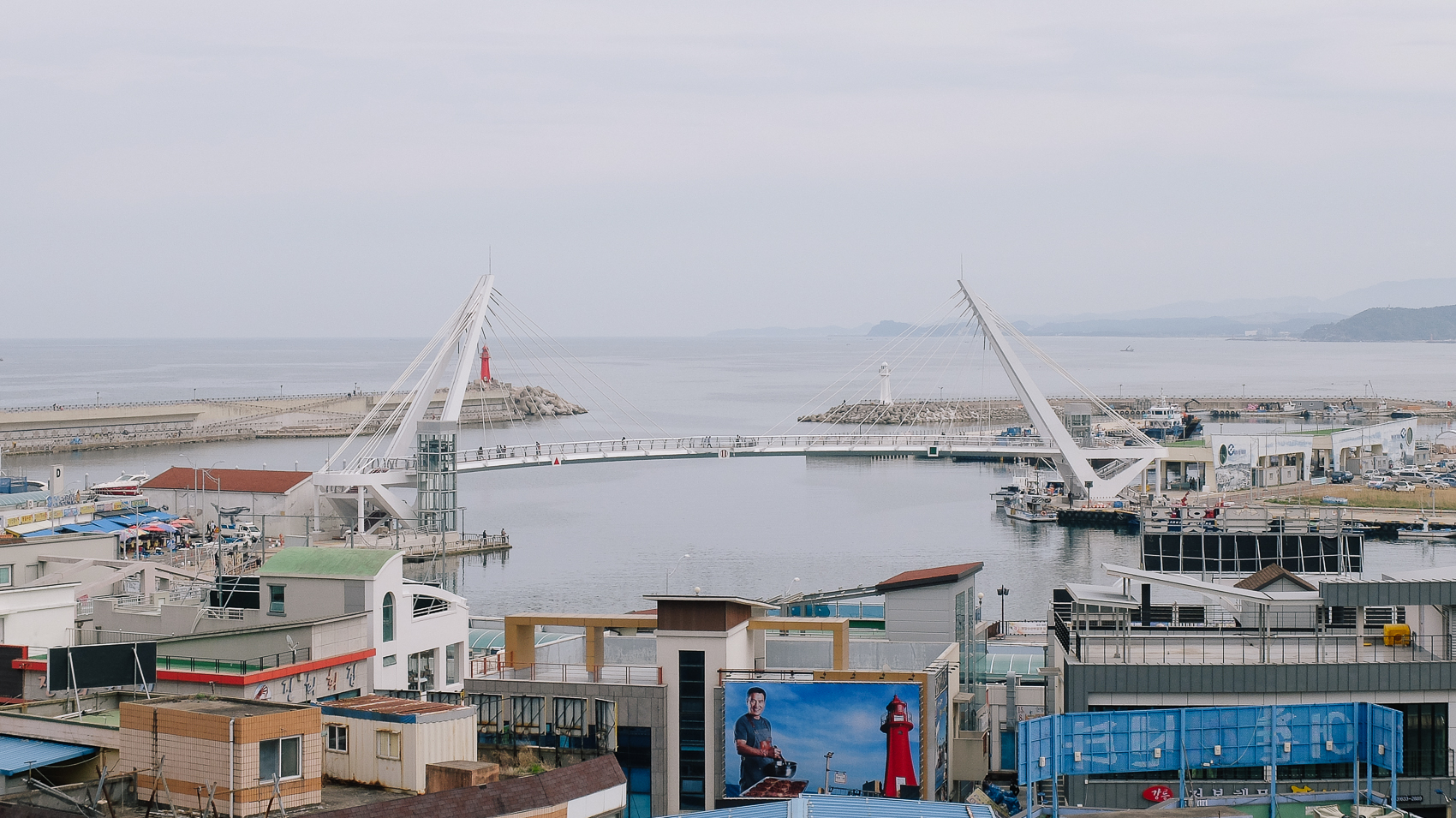 베란다 창문은 크게 나있어 채광이 좋았고 대포항 수산시장 전경을 감상할 수 있었다. 저 멀리 동해도 보이고, 나름 뷰가 좋은 펜션이라고 할 수 있었다.