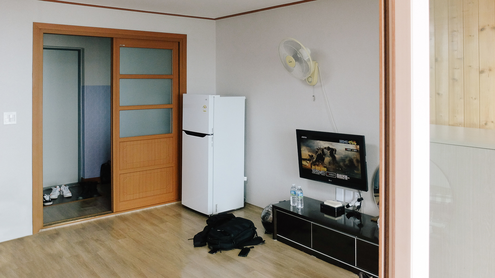이곳 방이 특징은 주방&화장실 영역과 현관이라고 할 수 있는 곳이 미닫이문으로 구분되어 공간감이 꽤나 정리된 느낌이 특징이다.