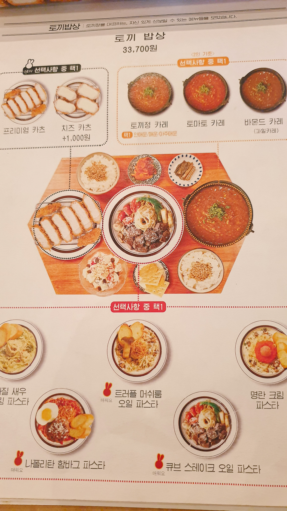 우리는 둘이서 함께 먹기 위해 달빛유자(5,800원) , 토끼 밥상(토끼정 카레, 프리미엄 카츠, 명란 크림 파스타) 33,700원을 주문했다.