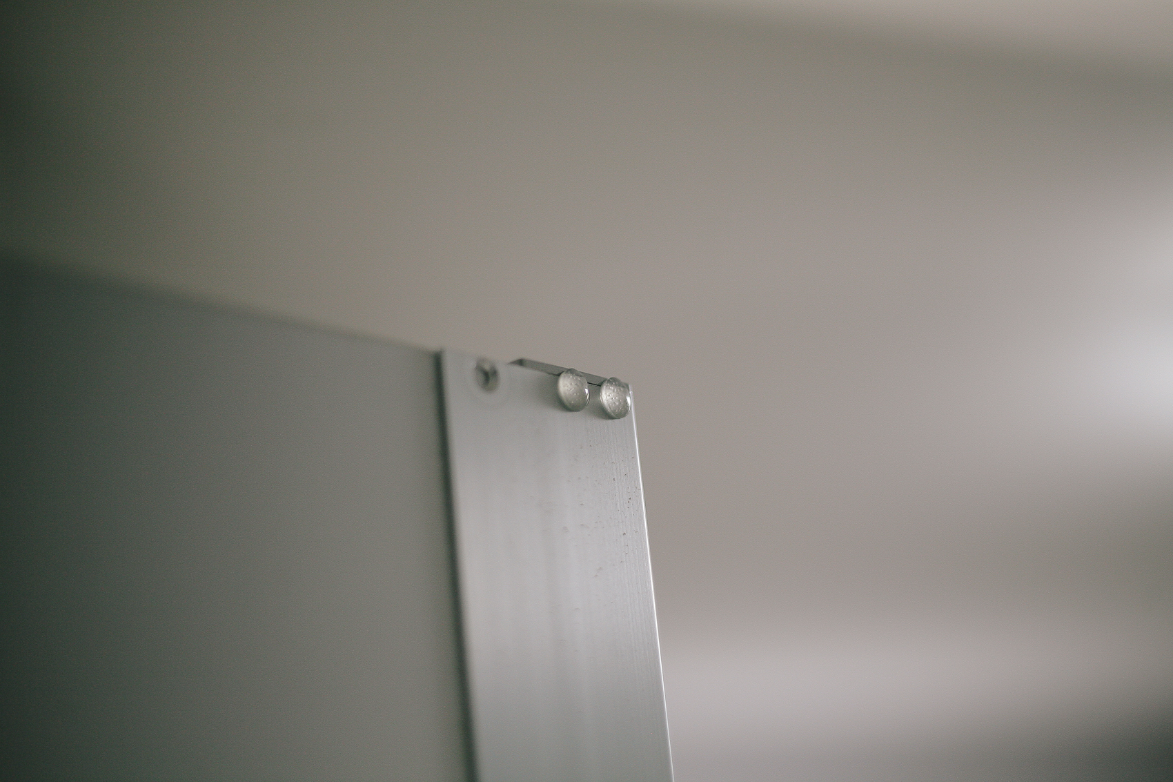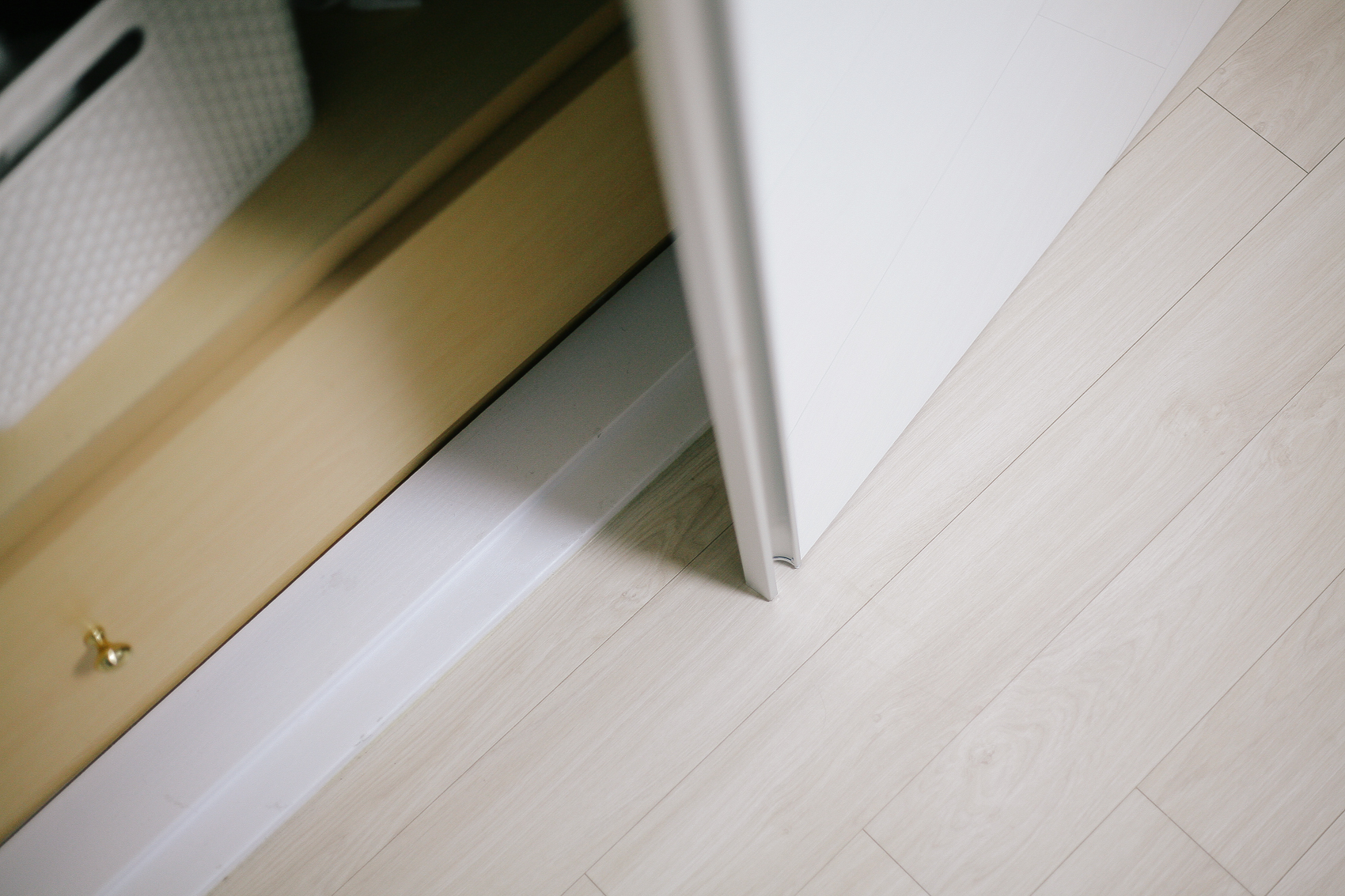 여기가 문제의 내방 붙박이장 도어. 위에서 말했듯이 활짝 여닫을 때는 도어의 댐퍼가 잡아주어 부드럽게 닫히는데 비해, 살짝만 열고 닫을 때는 댐퍼의 간섭이 거의 없기 때문에 충격음이 발생한다. 위와 같이 맞닿는 포인트를 체크!
