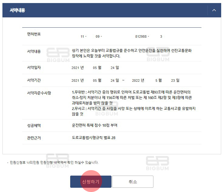 성공 혜택 : 운전면허 특혜 점수 10점 부여