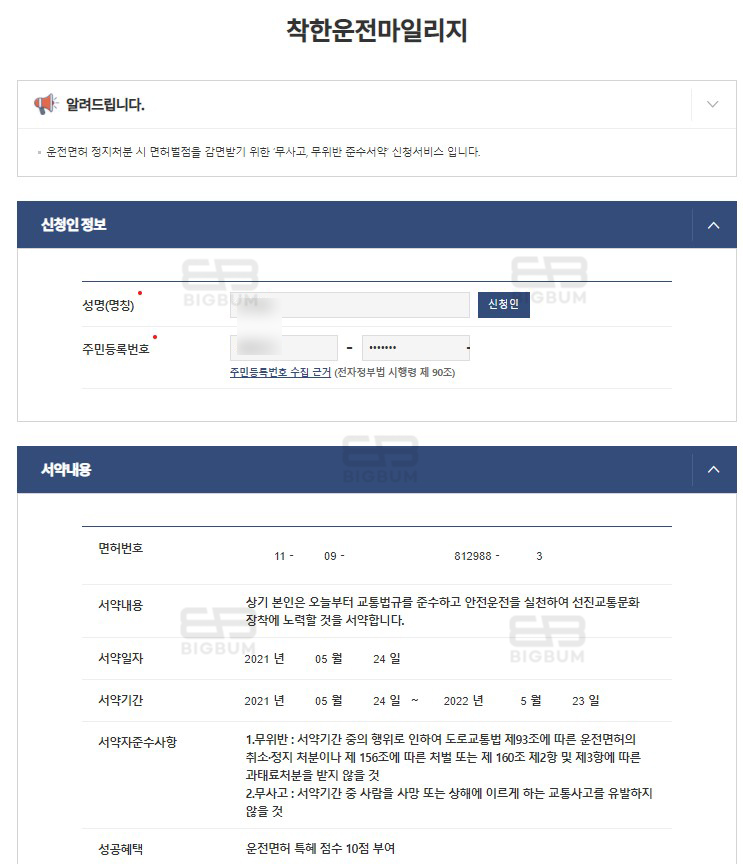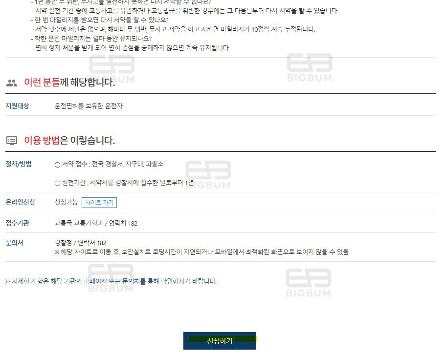 · 서약 횟수에 제한은 없으며, 해마다 무 위반, 무사고 서약을 하고 지키면 마일리지가 10점씩 계속 누적됩니다.