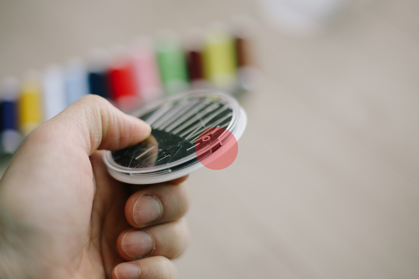 바늘 케이스 사용방법은 간단하다. 원형 케이스는 닫힌 상태에서 회전이 가능한데 사용하고자 하는 바늘을 구멍에 맞춰서 회전시켜준 뒤 빼서 사용하면 되는 것이다.