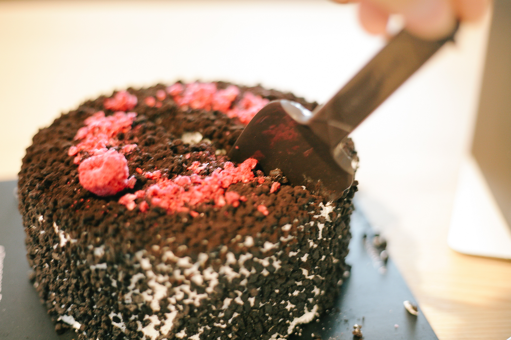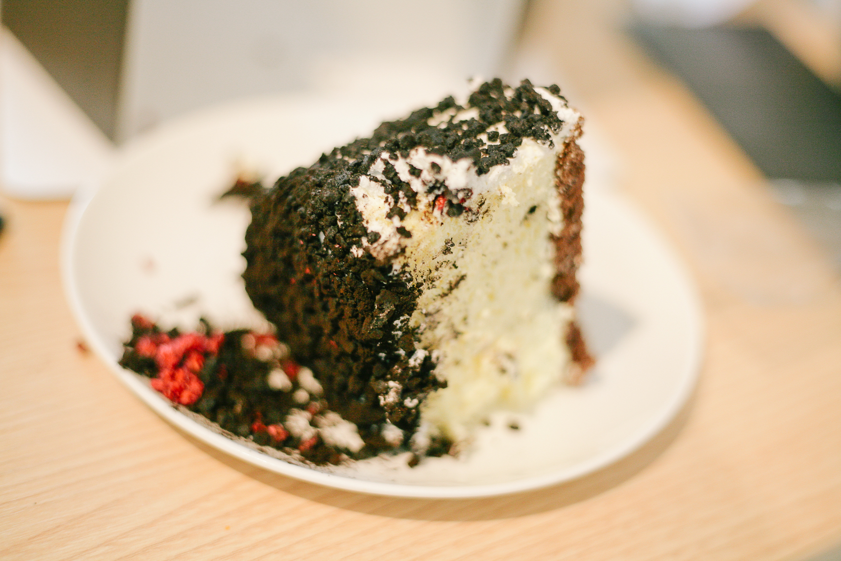 블랙 초코 크런치와 화이트 그뤼에르치즈 무스, 그리고 이름 모를 붉은 상콤한 것이 굉장히 조화로워 다소 느끼할 수 있을법한 단맛을 조금씩 잡아주는 맛이었다. 어쨌든 단 것이 몹시 당기는 날에 케이크라면 바로 그뤼에르 치즈 무스 케이크 추천한다.