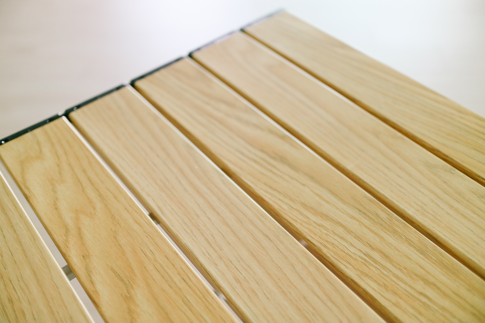 상판은 알루미늄으로 되어 있지만 우드 패턴으로 자연의 감성을 담았다. 직접 만지지 않는한 원목 상판으로 착각할 정도의 싱크로율이다.