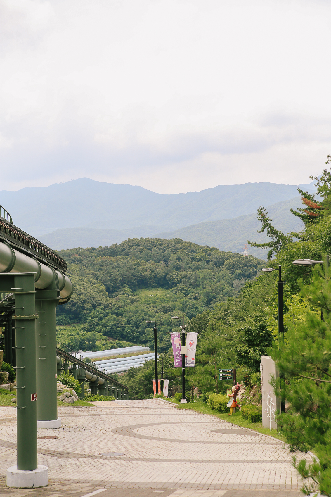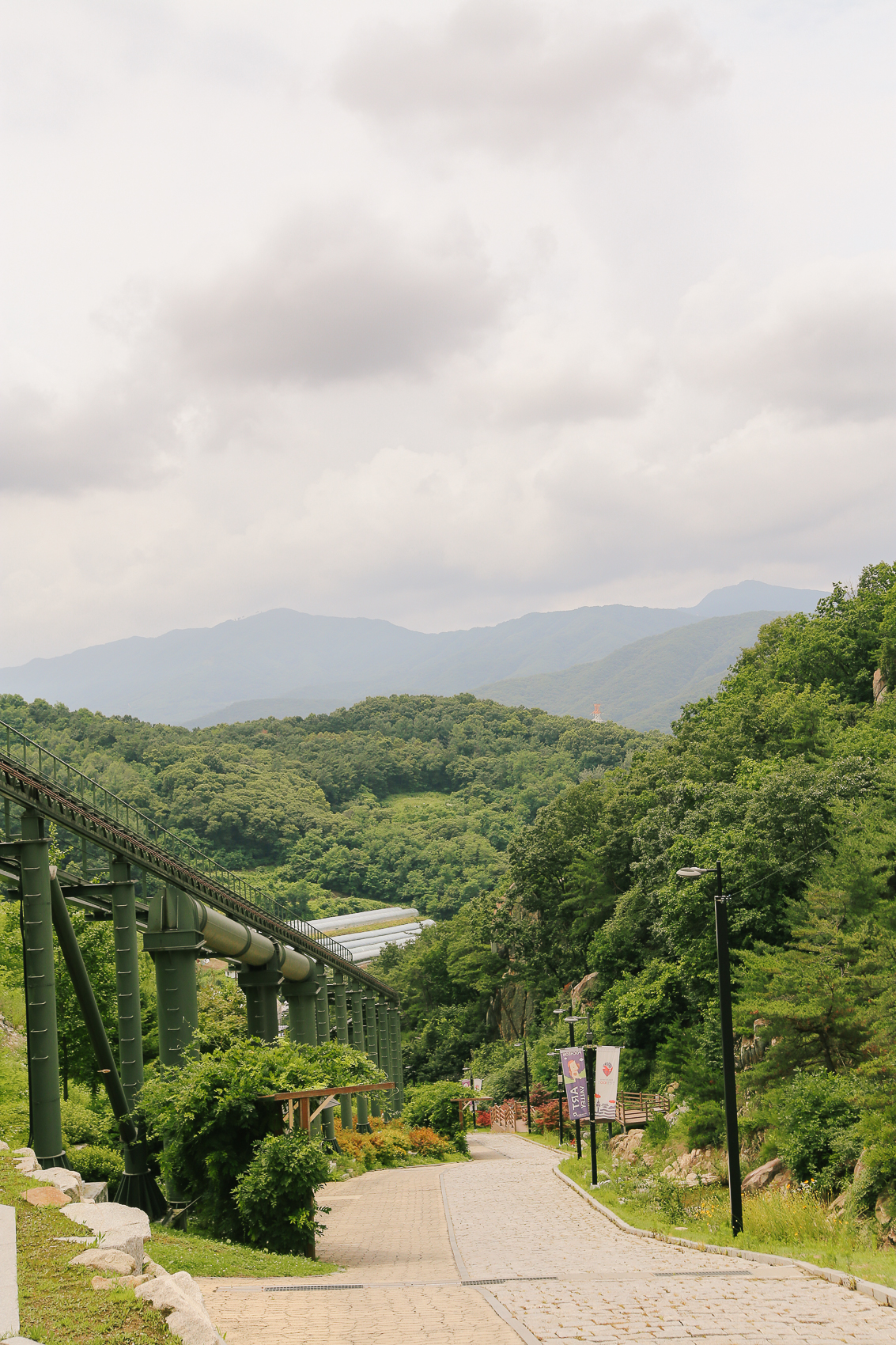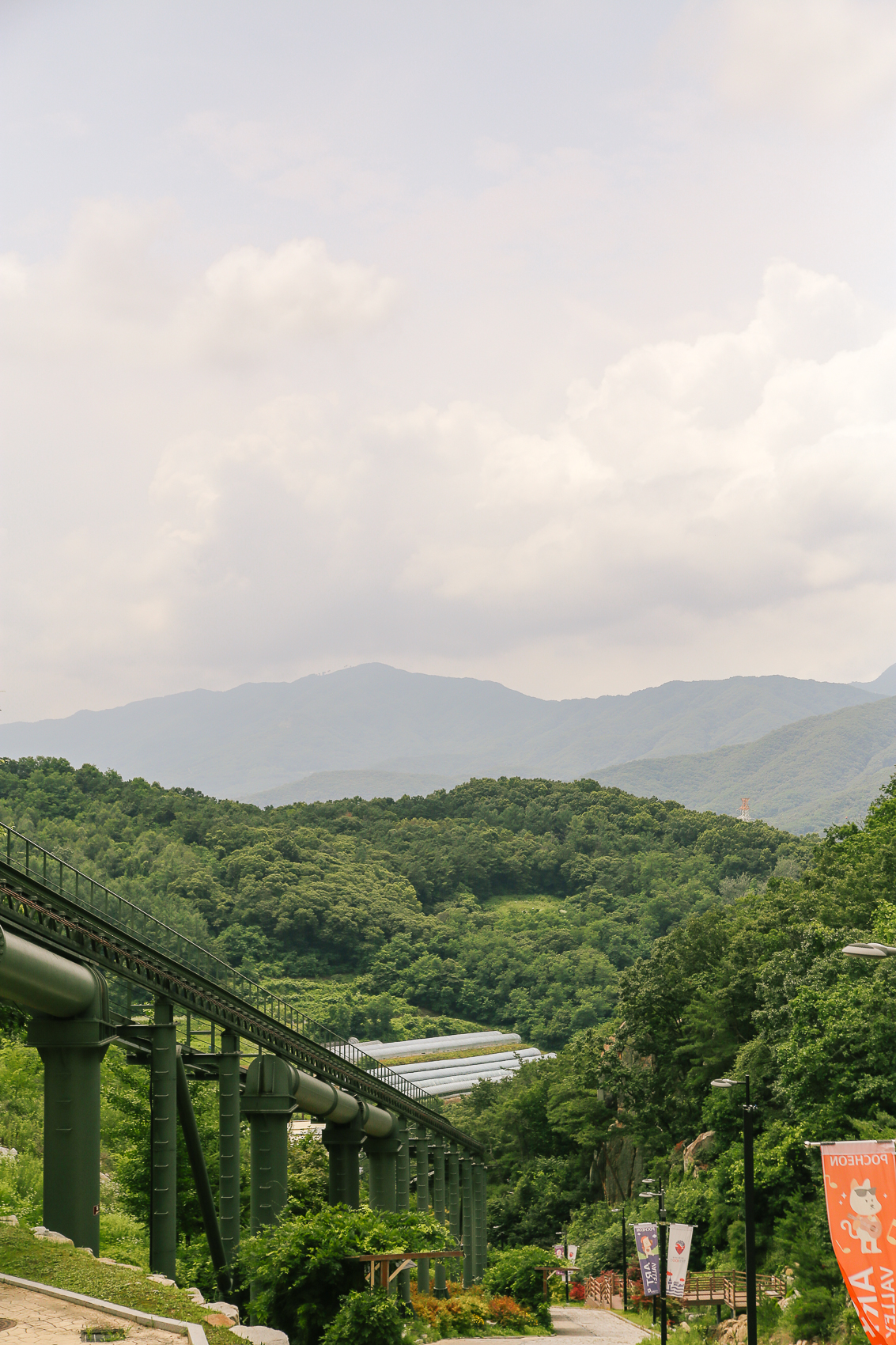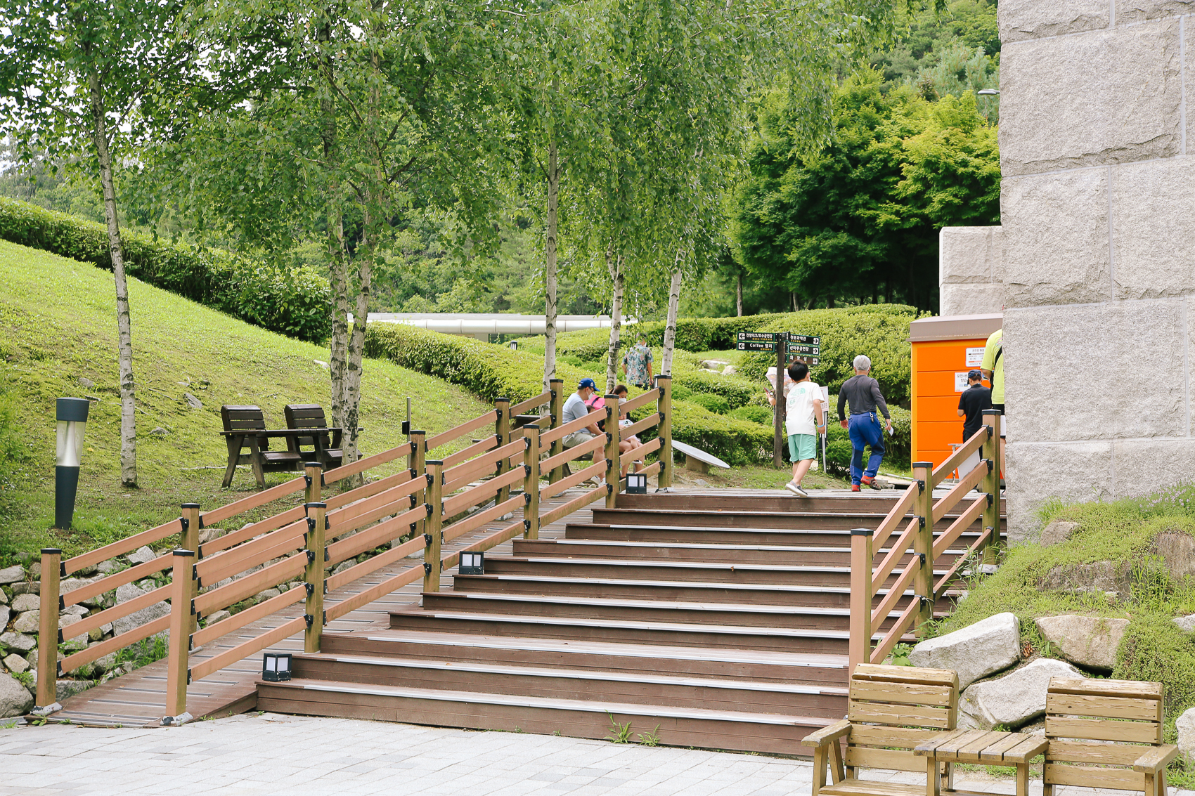 막 도착했을 때만해도 날씨가 흐렸기 때문에 별생각 없이 모노레일을 타지 않고 도보로 걸어 올라갔다. 하지만 5분도 안 지나서 후회를 했다. 급격한 경사 때문에 천주호로 가기 위한 여정은 굉장히 험난했다. 때문에 이곳을 방문하는 분들은 모노레일을 타고 올라갈 것을 권장한다. 성인 1인 기준으로 왕복 4,500원, 편도 3,500원이므로 무더운 날씨엔 편도를 타고 천천히 걸어 내려오는 것도 좋지 않을까 싶다. 포천시민은 모노레일 가격이 할인이 되어 성인 1인 왕복 2,300원 / 편도 1,800원이다.
