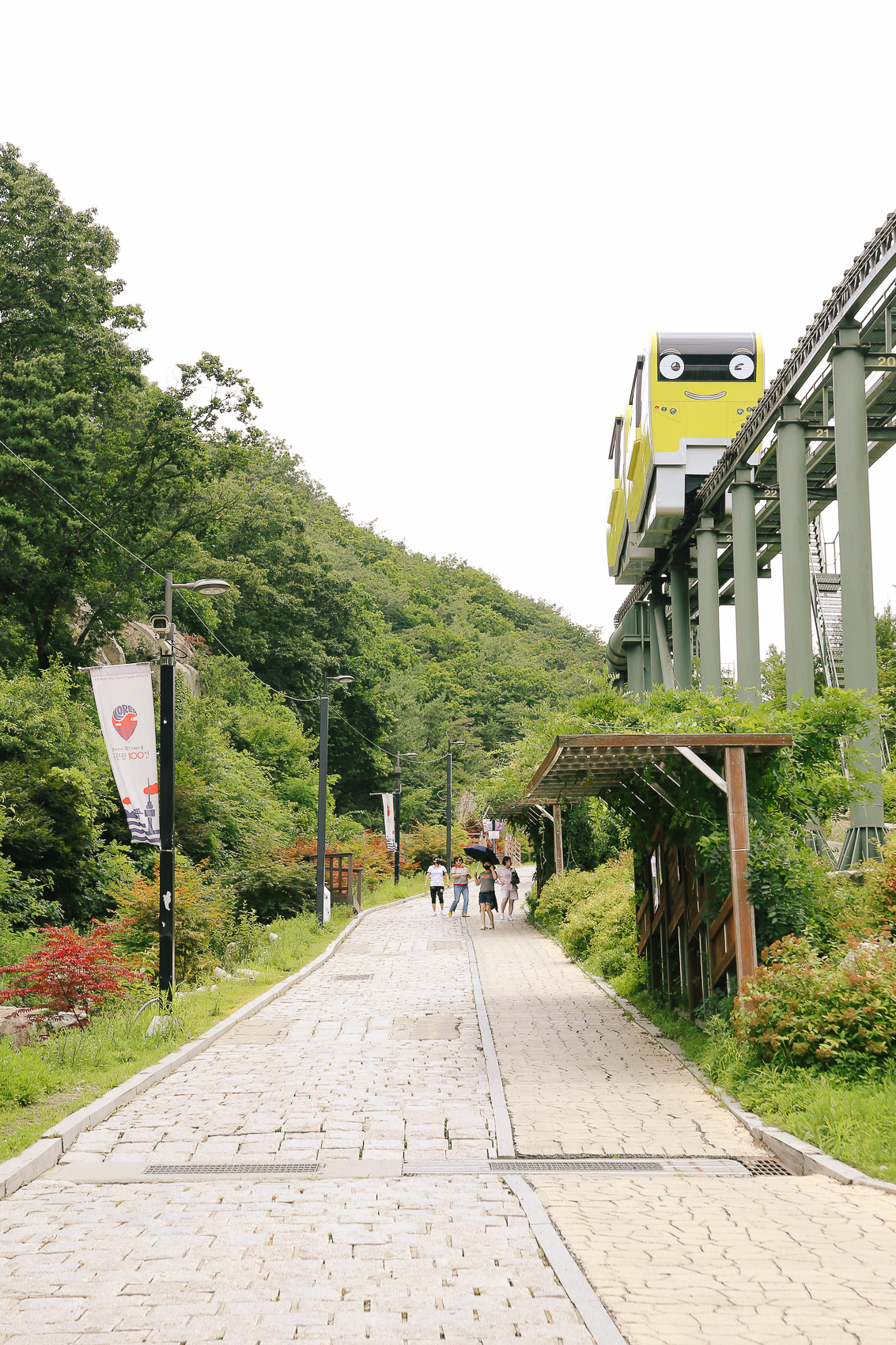천천히 도보블럭을 따라 올라가는 길에 오가는 귀엽게 생긴 모노레일을 만나볼 수 있었다. 하.. 그냥 편하게 모노레일 타고 올라갈걸 아내와 엄청 후회를 했다. 거리는 적당한 편인데 경사가 가파르기 때문에 굉장히 힘이 들 수 있다.