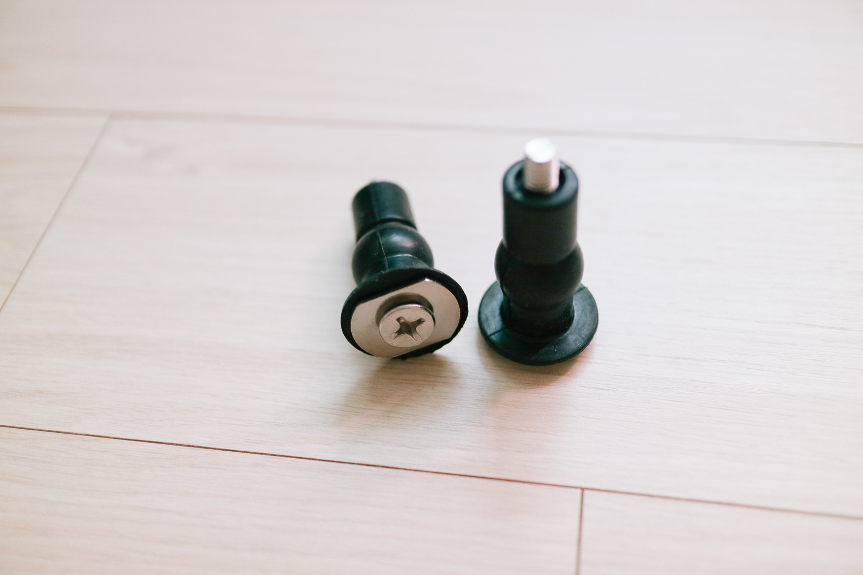 비데 설치용 앙카볼트 상부 체결형 볼트를 제거하면 고무패킹으로 된 몸통을 구멍에 넣어준다. 당연히 넓은 면이 보이도록 넣어준다.