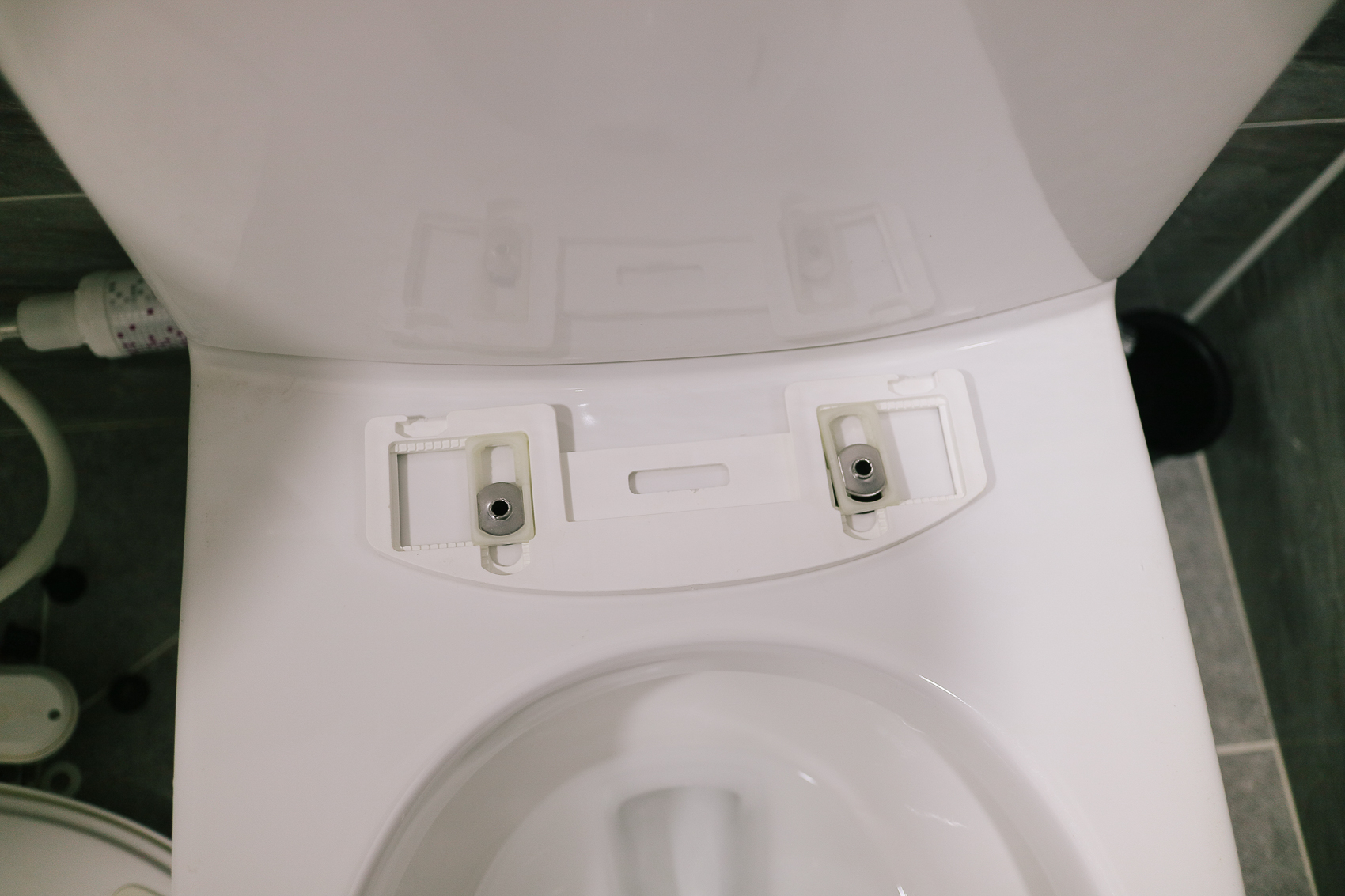 다시 잘못 설치한 비데 고정 프레임 위치를 수정하고 비데를 재설치한 모습이다. 외관상 변화는 없지만 비데를 해체하고 설치하는데 굉장히 수월해진 셈이다.