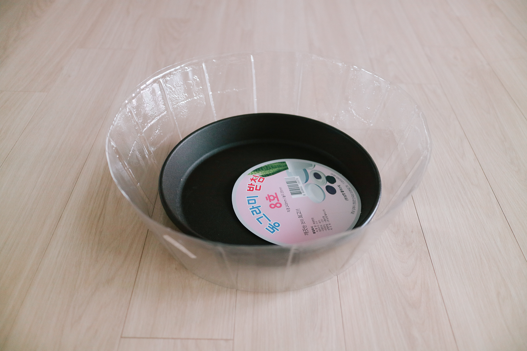 원형 화분 받침대를 넣어준다. 내부 모습을 보면 저렇게 하단 부분에 속커버와 받침대가 사이좋게 자리 잡은 모습이다.