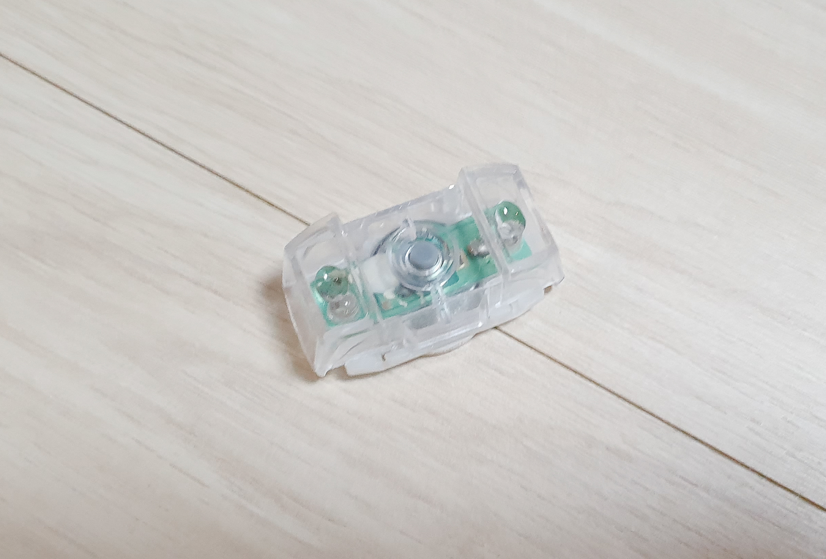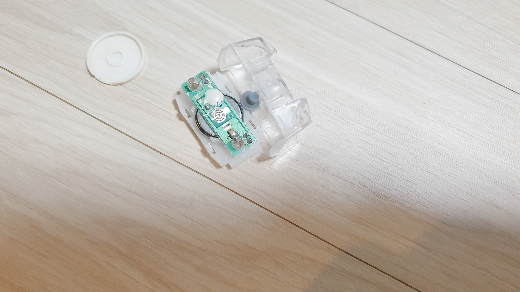 이제 LED 실리콘 자전거 라이트 후미등의 윗부분 구멍에 맞게 회색 버튼을 살포시 끼워준 뒤 분해 역순으로 LED 실리콘 자전거 라이트 후미등을 조립해준다. 조립 전 임시로 버튼만 회로 기판에 얹혀서 스위치를 눌러봐도 작동이 되니, 스위치를 살포시 올려놓아 조립 전 작동 유무를 체크하는 것을 권장한다. (작동 안 되면 다시 분리하는 번거로움 때문)