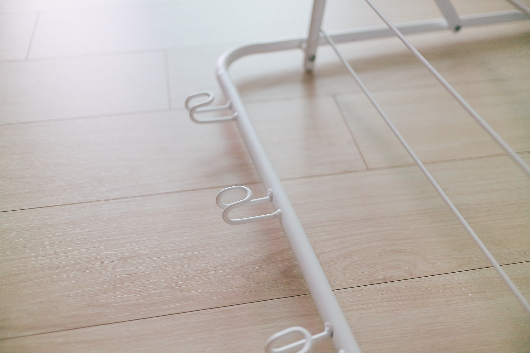 설치라고 하면 거창하고 옷걸이 걸듯이 간편하게 쓱 걸어두면 끝! 제품은 일정한 하중도 견뎌내며, 견고한 와이어 랙으로 쉽게 변형되지 않으며 분체 도장 코팅으로 뛰어난 내구성을 지닌다.
